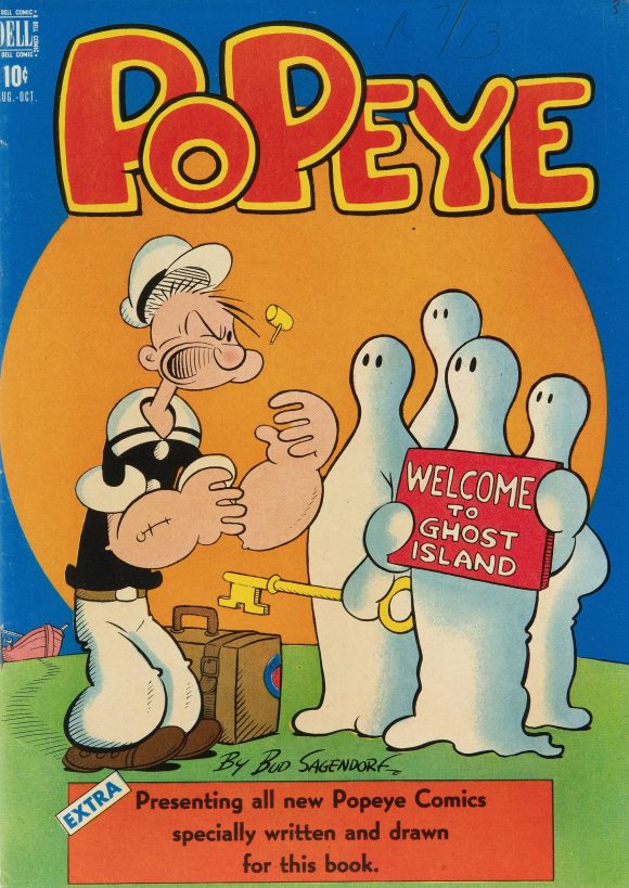 Since we’re in a colorful mood, here are 13 COVERS from Dell’s midcentury series. These are from the first 50 issues, from 1948 to 1959, all by Bud Sagendorf.