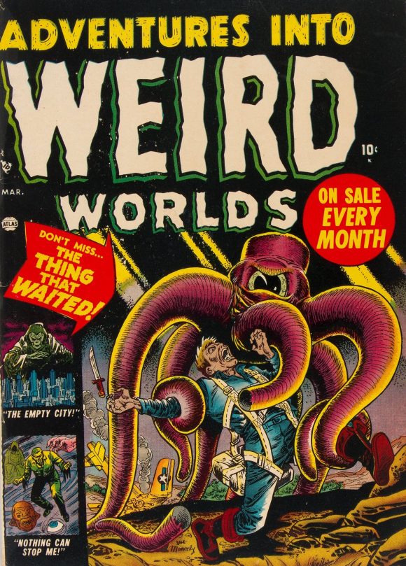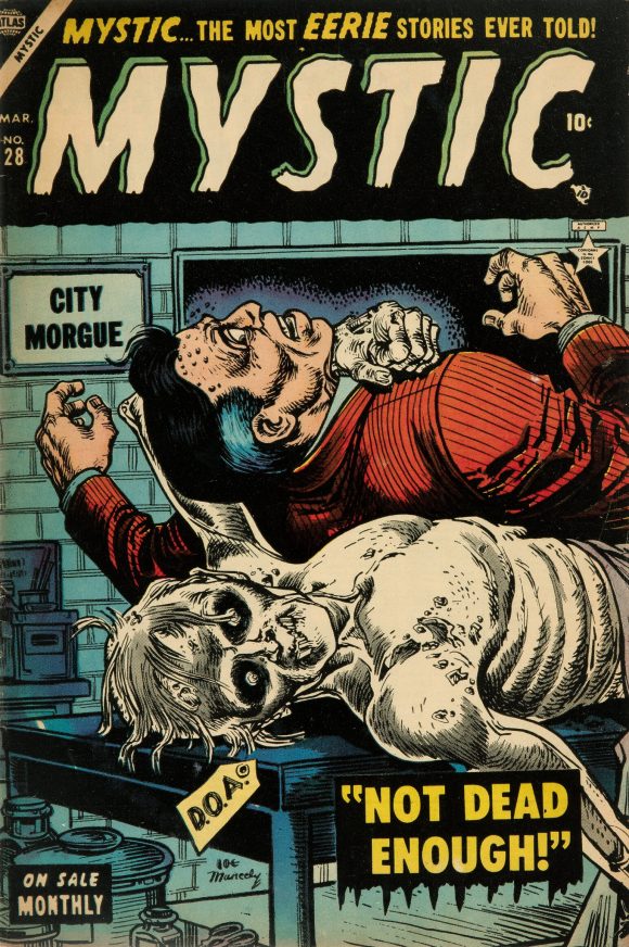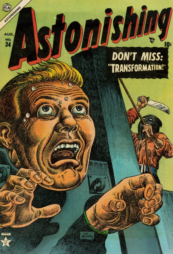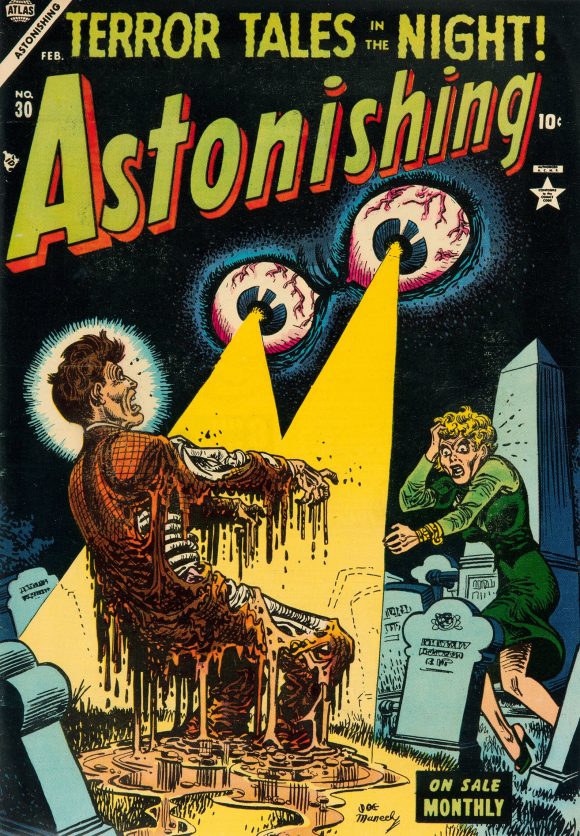 It was said of artist Joe Maneely — born a century ago, on Feb. 18, 1926 — that he could draw anything. We’ve published a number of galleries in the past, but for this year, we’re spotlighting his forays into such Atlas Comics horror titles as Suspense, Astonishing, and Adventures Into Weird Worlds.