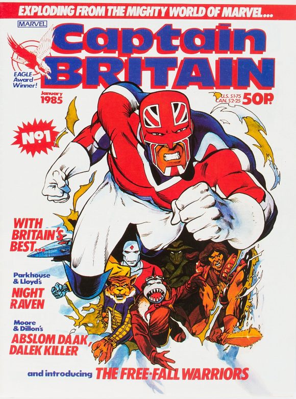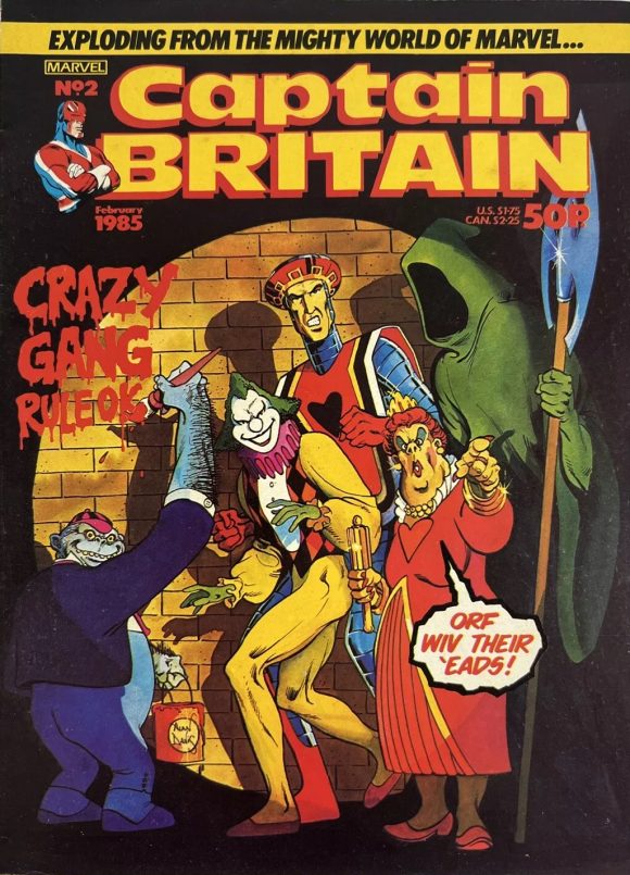 (I actually picked up a copy of the 1985 series Captain Britain #1 while in London a couple years back, along with a stack of other Marvel UK titles going back to the ’70s. I love “foreign” comics.)