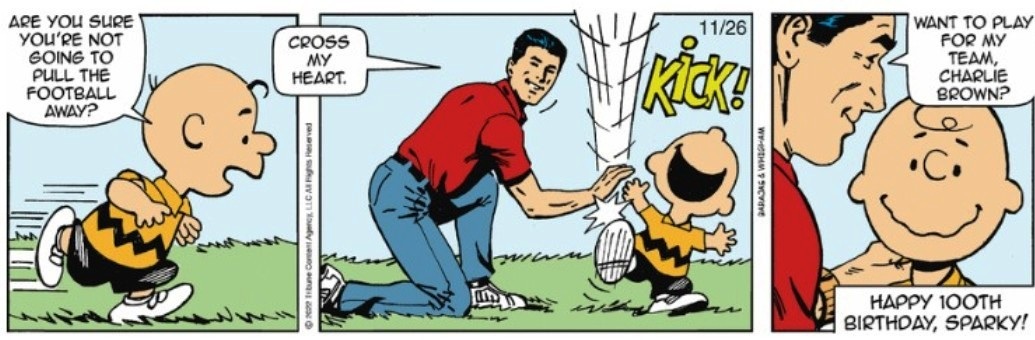 Here are 13 of those strips. For many more, visit this link to the Charles M. Schulz Museum: