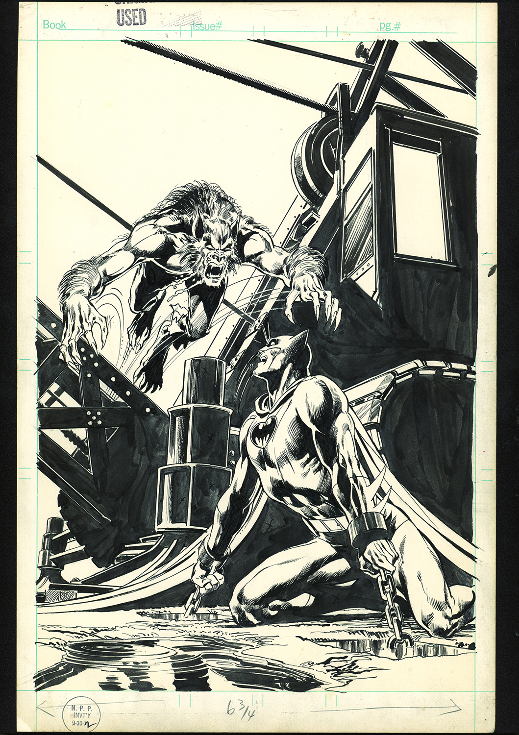 Batman #255 (March-April 1974). Here’s another cover you need to compare to the published version. As a kid, I loved the DC 100-page giants — they introduced me to so many classic Golden Age stories. But they had a very strict cover layout. In this case, the image here was shrunk to fit the cumbersome dictates that were editorially imposed. The original art was drawn full size and is outstanding. And as a side note, this was Neal’s final Batman story for many years–and it’s truly one of his very best. (It was written by Len Wein.)