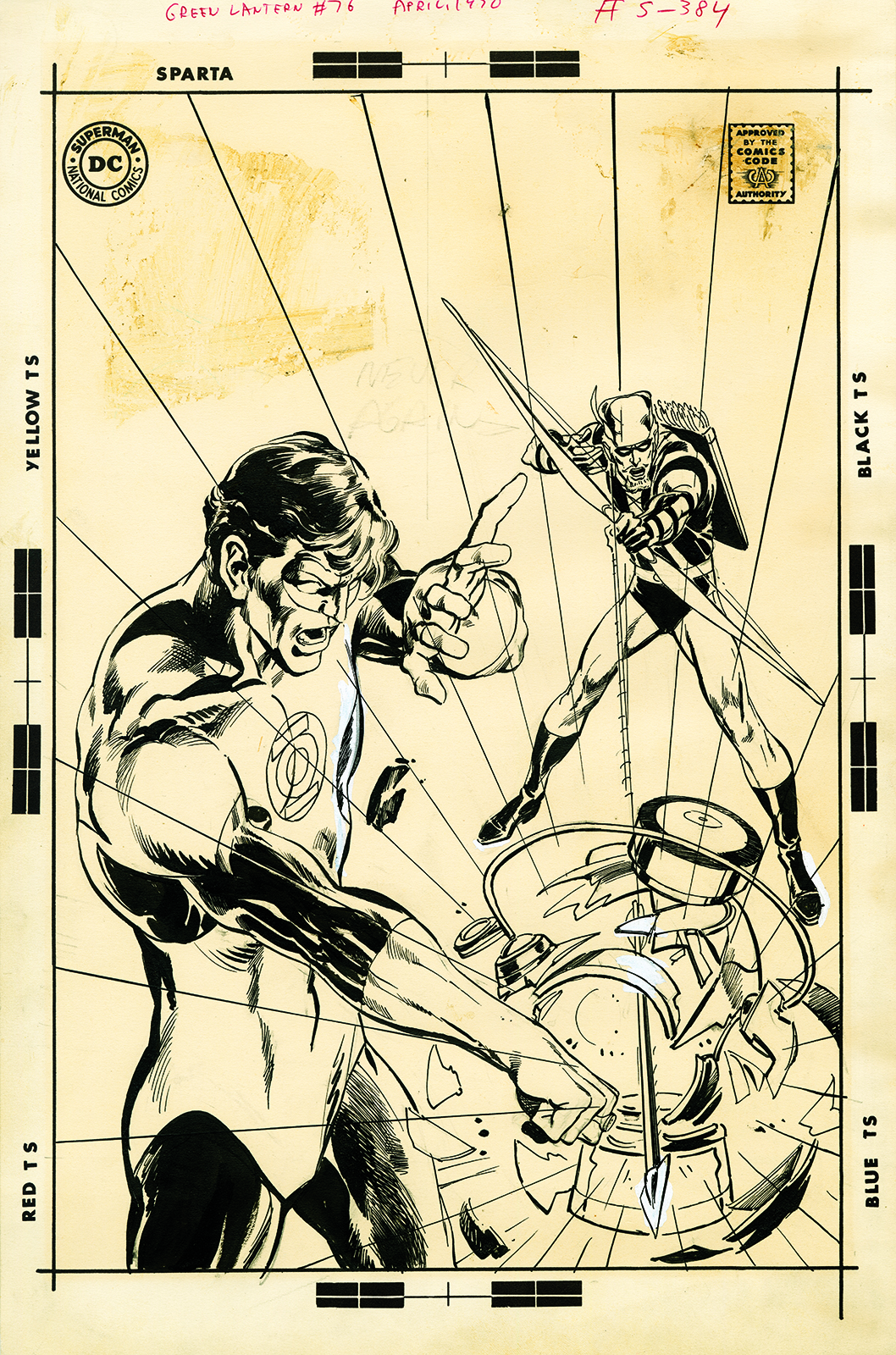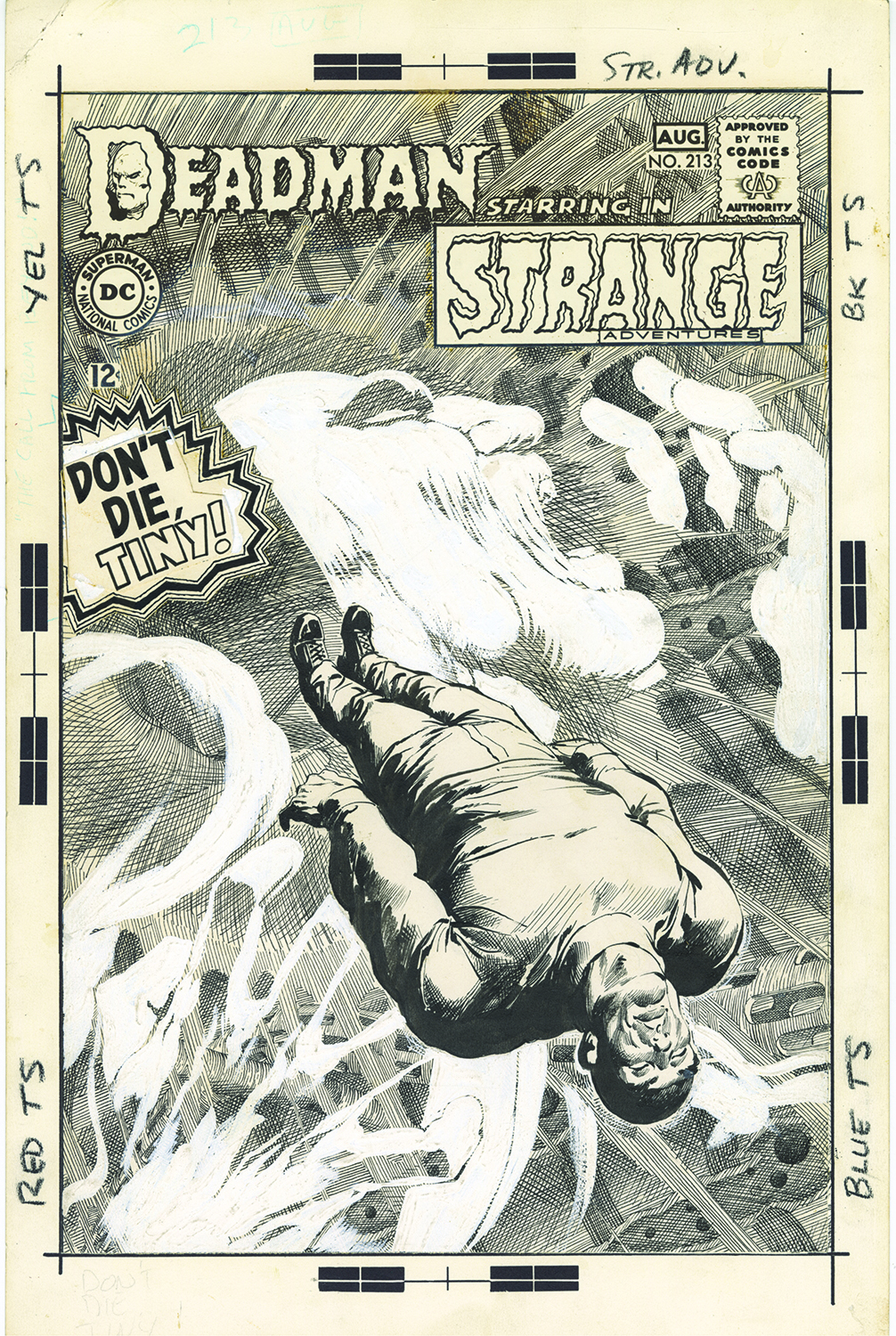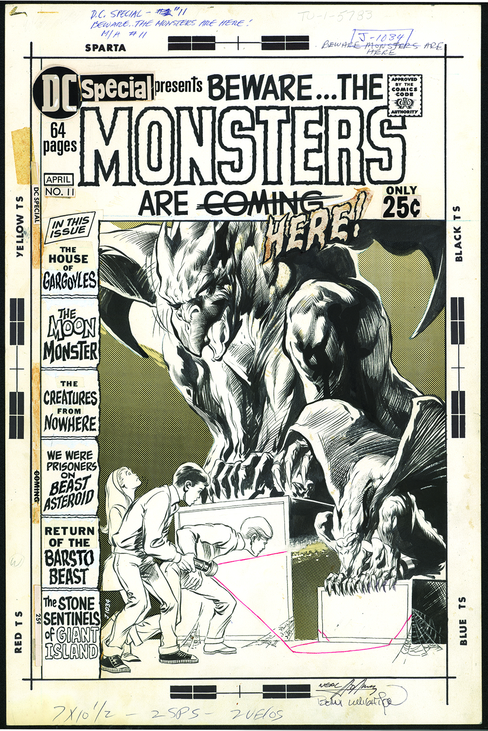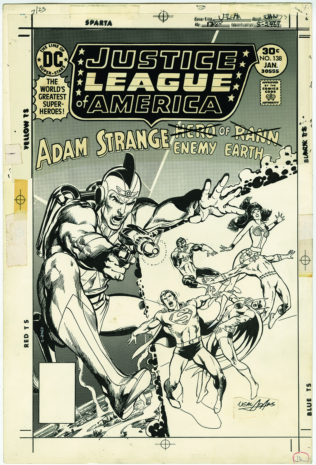 I notice the comic’s logo, month and price, Comics Code Authority seal and similar elements are with the original art. Was Adams and other artists given elements like these to draw around? I always assumed they were placed over the finished art with the possible exception of the logo, of which the artist may have created a “rough” version as a place holder.
