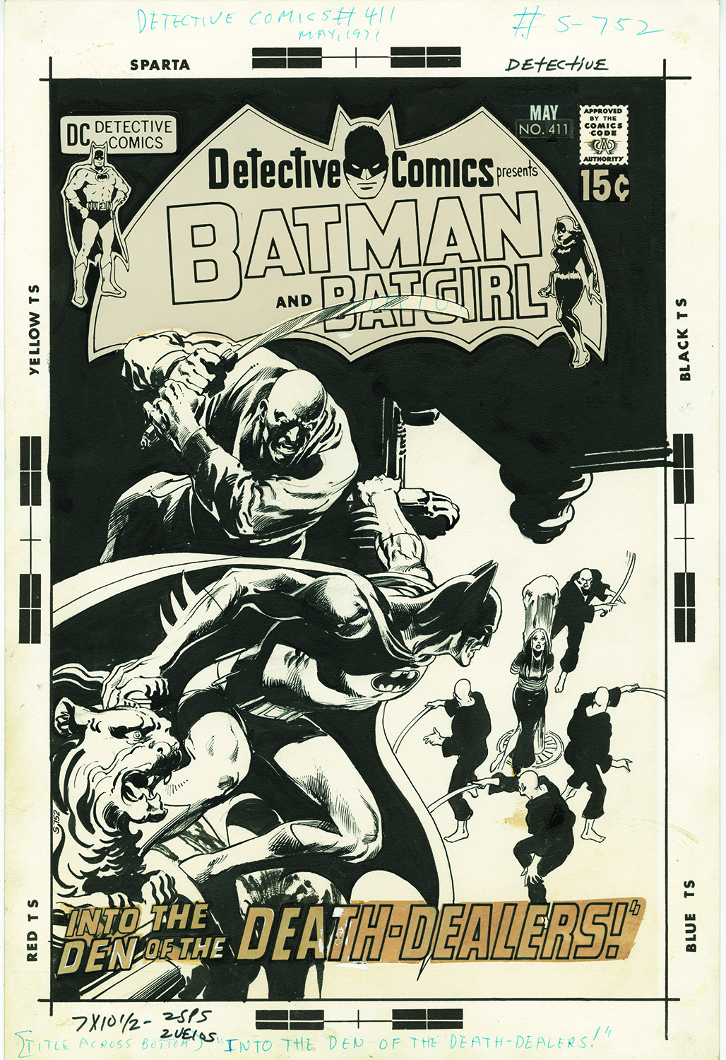 Detective Comics #411 (May 1971). Just a beautiful batman cover by Neal. And I love how the DC production department meticulously cut a path for the sword in the logo. Fun fact: That’s the first appearance of Talia there.