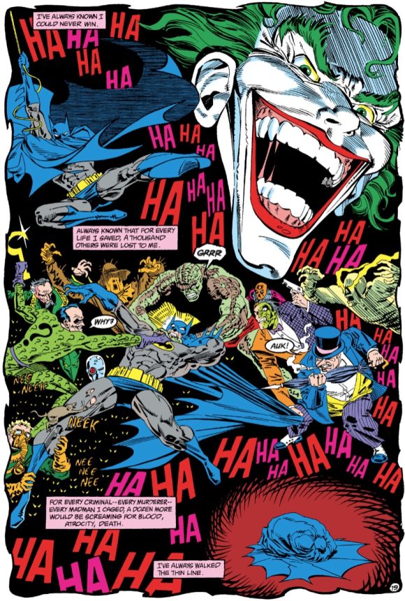 This was also the first arc in which the death of Jason Todd and the events of The Killing Joke were finally referenced by this creative team. Other factors — such as guest appearances by the Demon and the Penguin that same year, and the reintroductions of Catwoman, Catman, and Vicki Vale the following year — foretold great things to come for a writer-and-artist team that had been rapidly gaining buzz ever since taking over Detective two years prior.