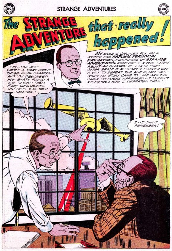 The Pulp Fiction Library’s Mystery in Space trade paperback reprinted “Lights, Camera — Invasion!” from Strange Adventures #31.