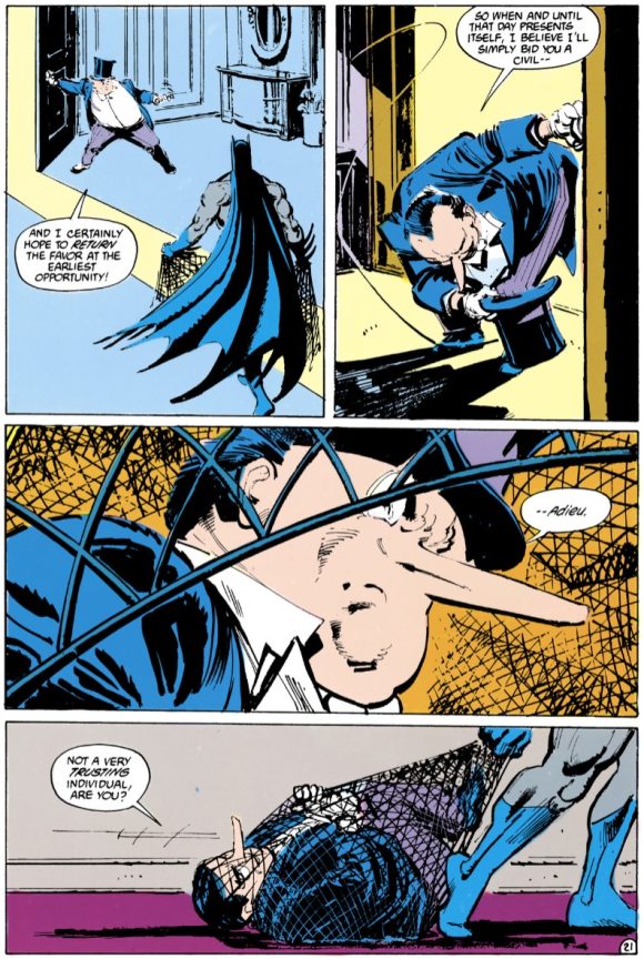 11. He’s a Master Visual Storyteller. That very same issue of Detective contained a great Penguin appearance, and the page with his capture shows that Janson knows exactly how to tell a story in pictures. Take away the word balloons, and you can still tell what’s going on in the panels.