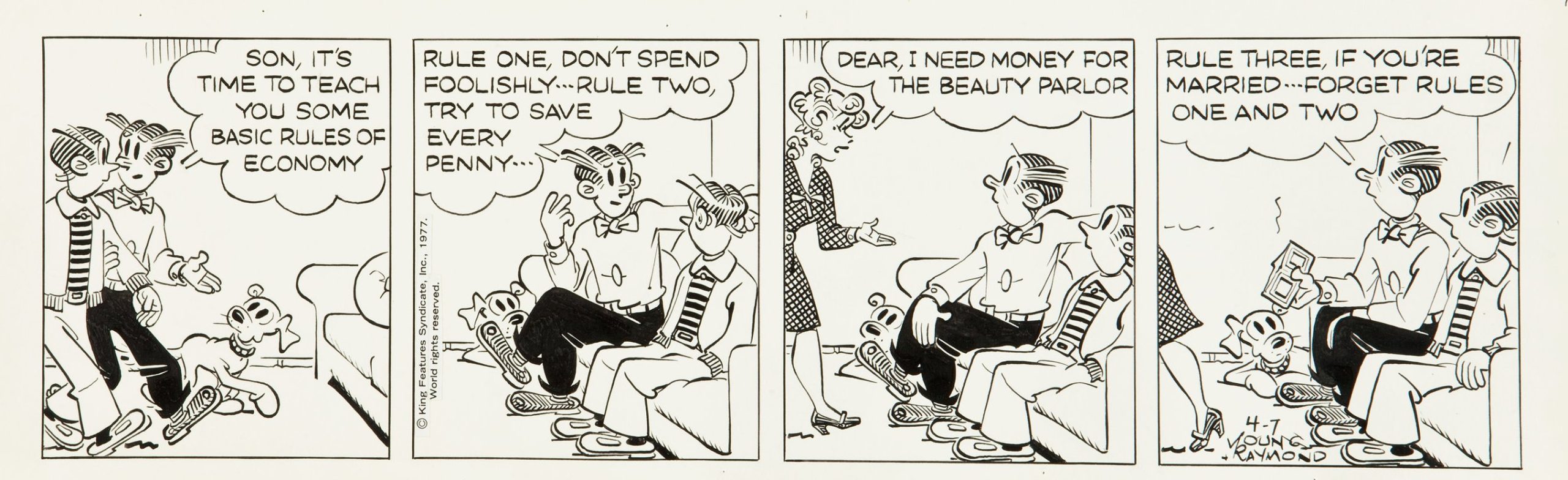 Original art for April 7, 1977 strip. Writing by Dean Young. Art by Jim Raymond.