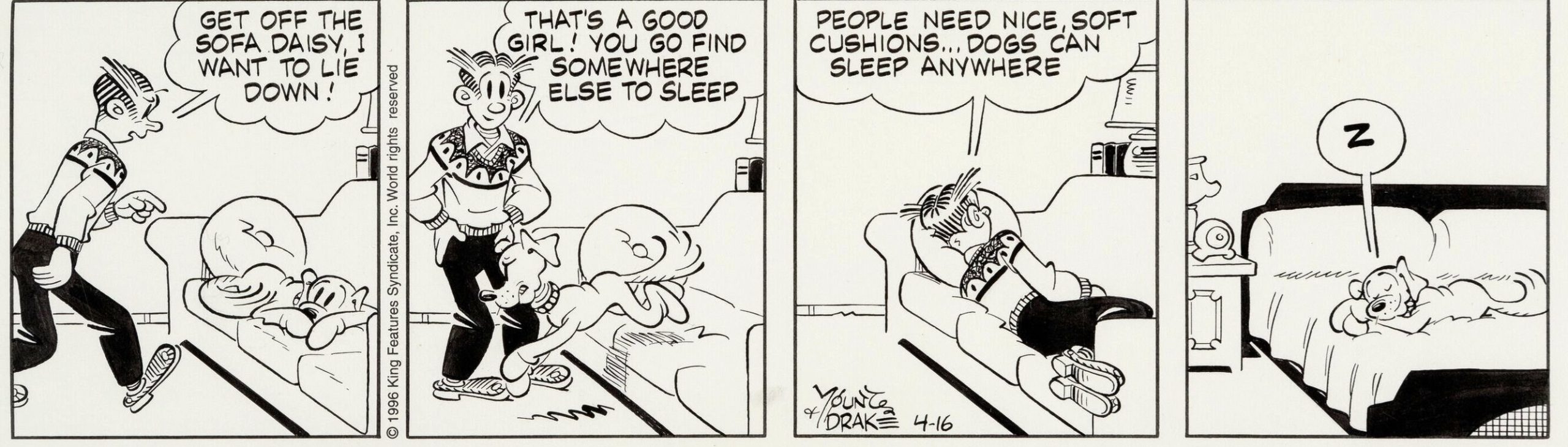 Original art for April 16, 1996, strip. Writing by D. Young. Art by Stan Drake.
