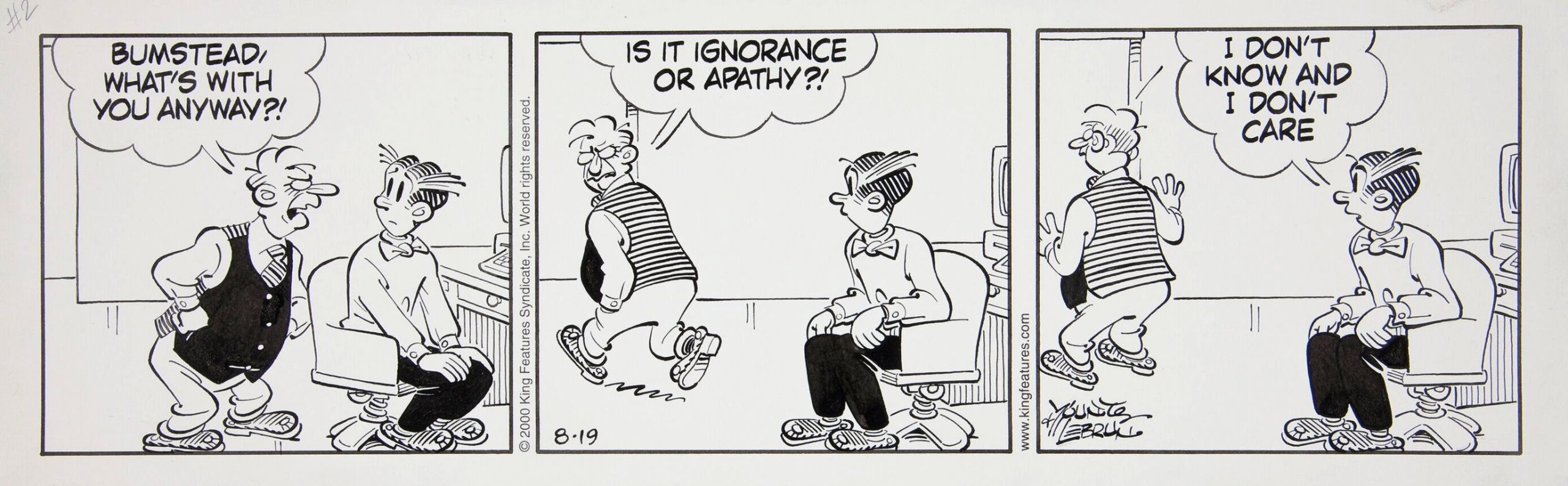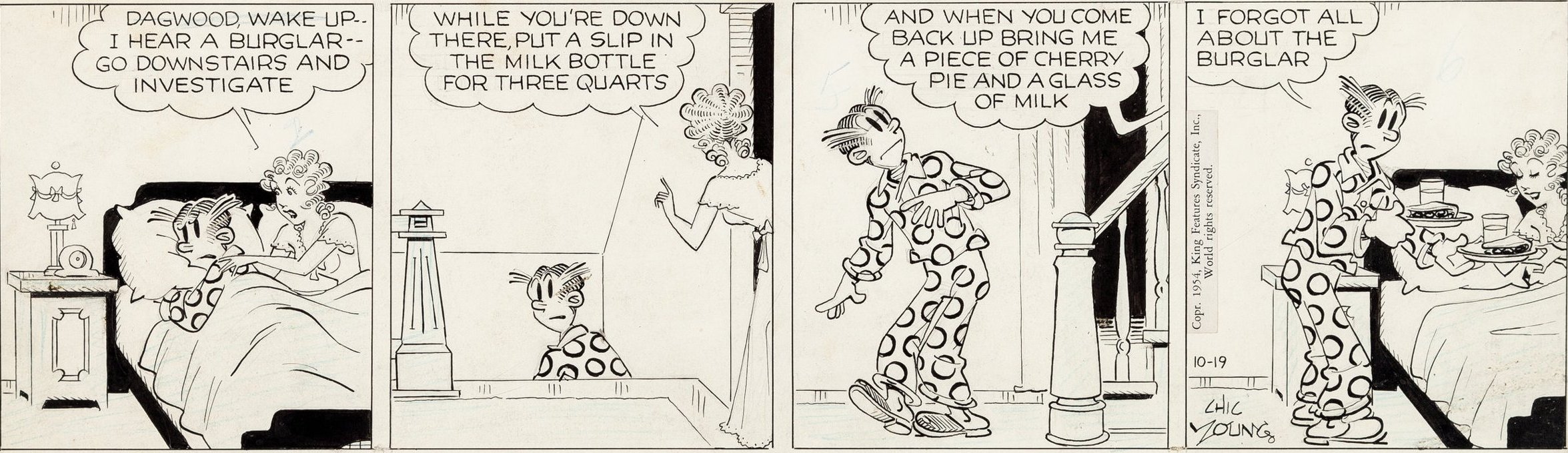 Original art for the October 19, 1954, strip, drawn by Jim Raymond but signed as “Chic Young.”