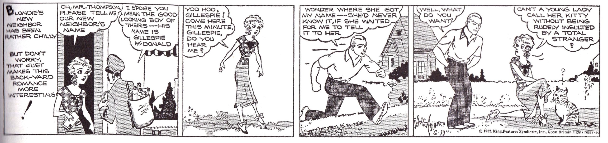4. In the early years of the Blondie strip, it was not a great circulation success. The tumultuous romance between flapper Blondie and rich Dagwood was not getting much sympathy from a public going through some of the worst times of the Great Depression. For awhile, it looked like Dagwood was going to disappear from the strip entirely. During 1932, there was a period where he was absent from it for almost three months, while Blondie was pursuing a new beau named Gil.