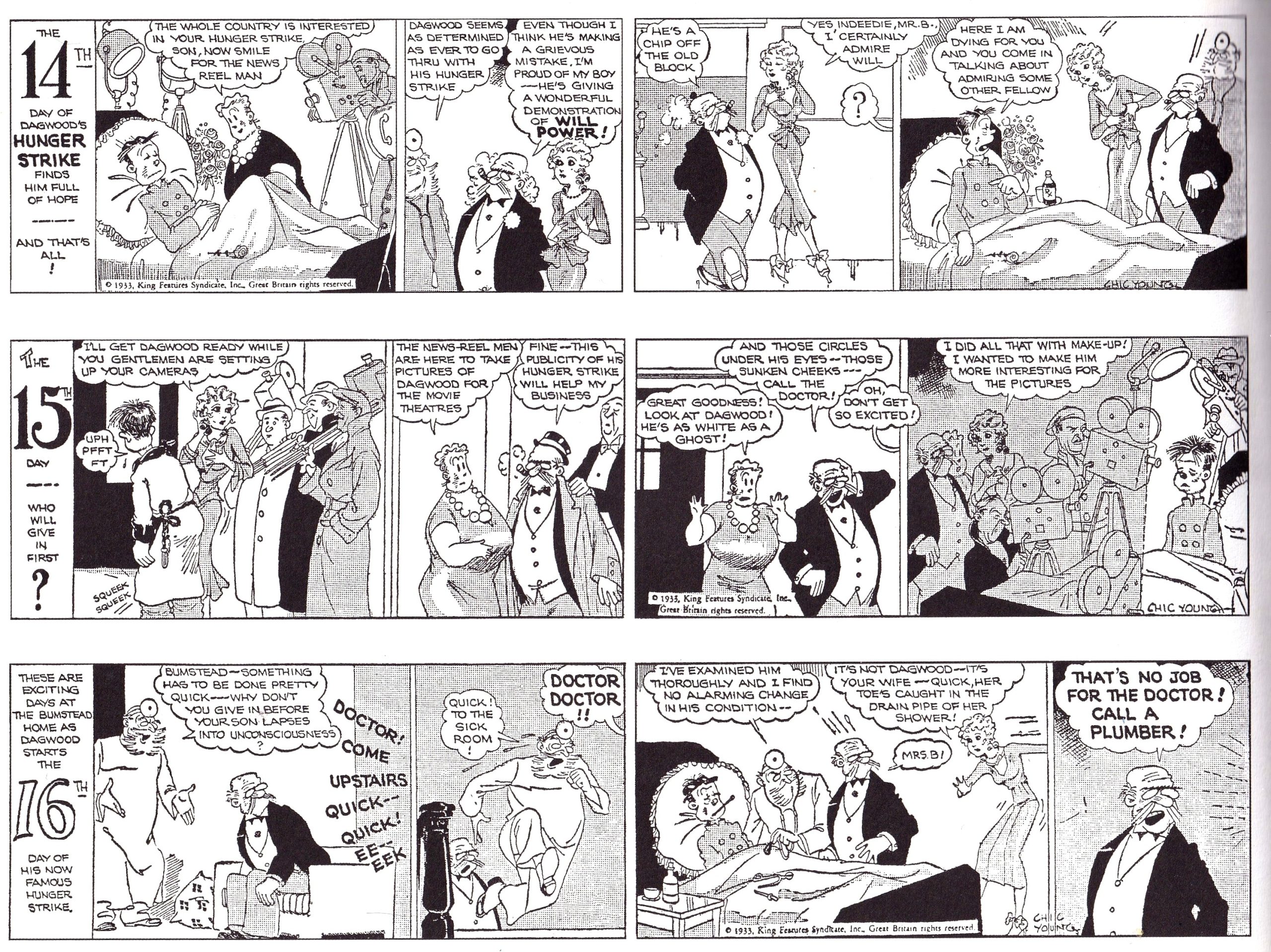 Days 14, 15, and 16 of Dagwood’s hunger strike for love. January 16-18, 1933.