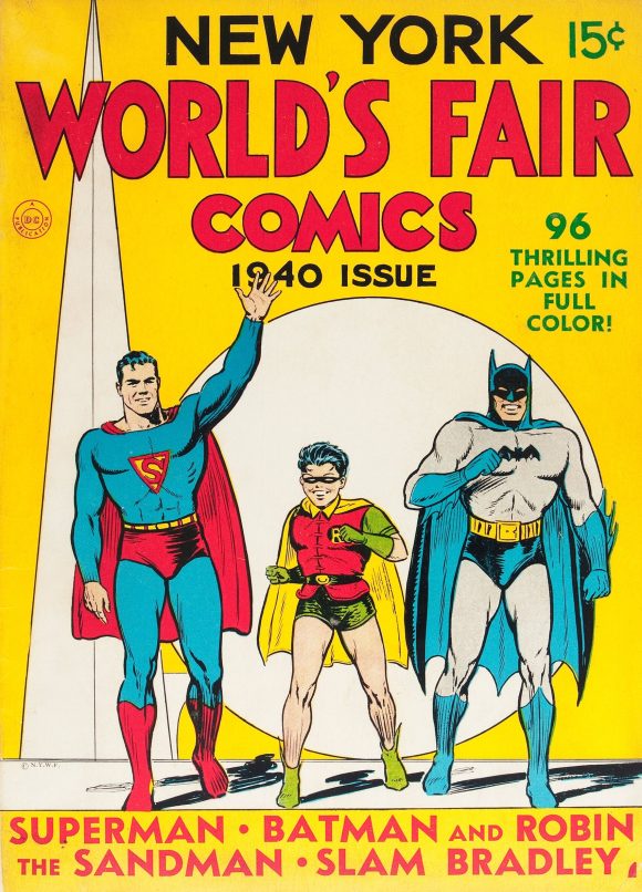 As a follow-up to my article last year about 1939’s New York World’s Fair Comics from DC, it’s time to look at the 1940 edition: Besides being a great item all around, it was the very first time – 85 years ago! – that Superman, Batman and Robin were on a comic-book cover together.
