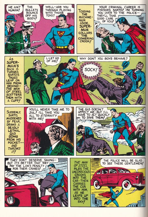 Superman, written by Siegel and drawn by Burnley (ghosting for Shuster)