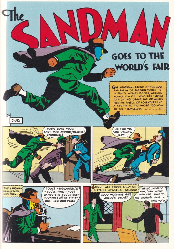 The Sandman, written by Gardner Fox and drawn by Chad Grothkopf. The splash panel is based on a Creig Flessel drawing from Adventure Comics #50 (May 1940).