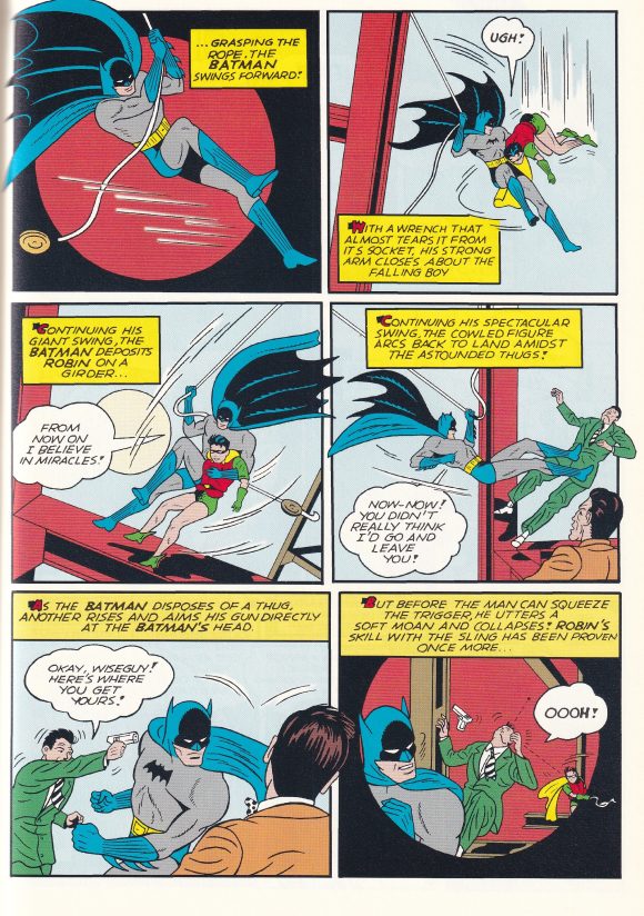 Batman, written by Bill Finger and drawn by Bob Kane, with backgrounds by George Roussos