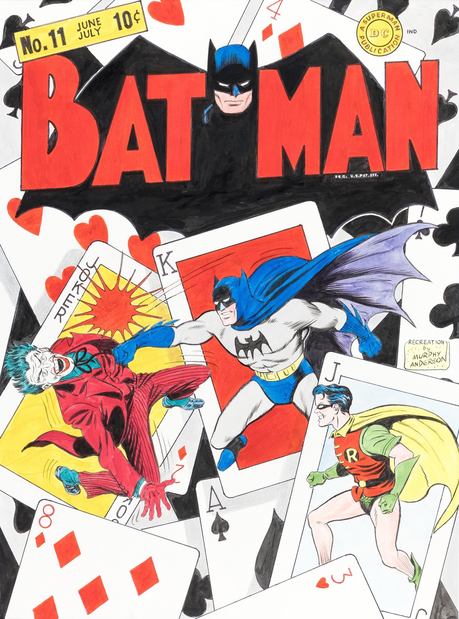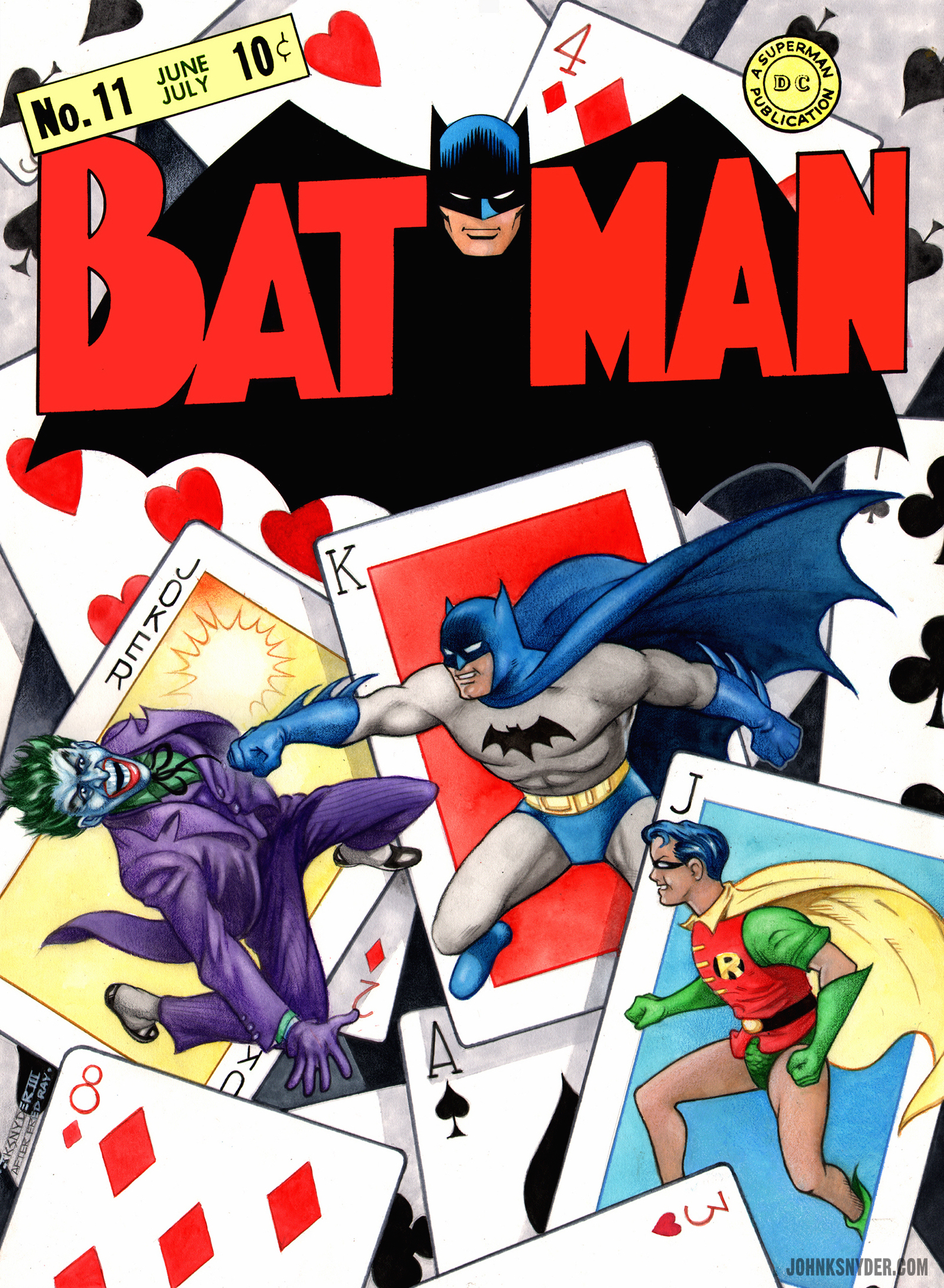 1942’s Batman #11 cover, pencilled by Fred Ray and inked by Jerry Robinson — the first Joker cover appearance — is not only one of the greatest fronts of the Golden Age, it’s long been my personal favorite of the era. So every time we get a chance to feature it, we take it.