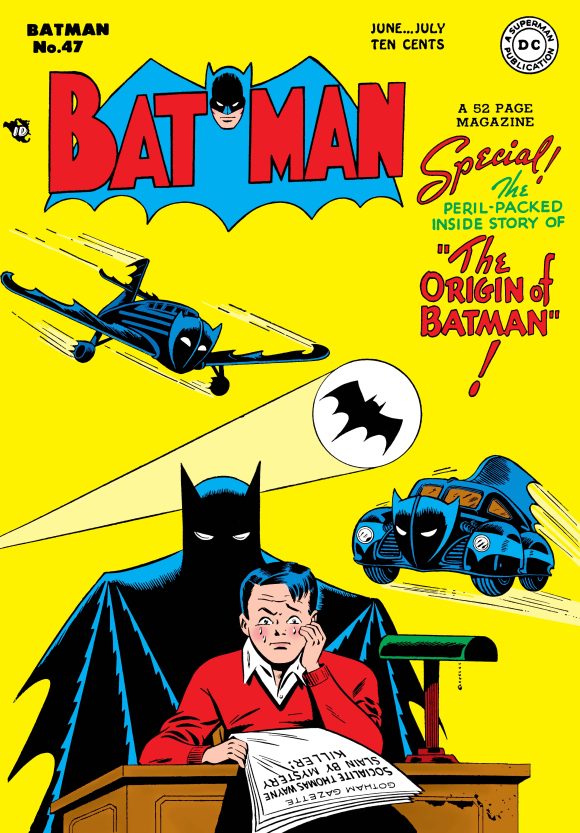 Batman’s origin was first told as a two-pager in 1939’s Detective Comics #33 and reprinted (with rejiggered art) in 1940’s Batman #1.