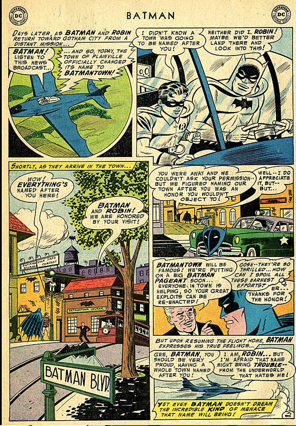 And, thus, the 100th issue – which also contained “Pete the Cop” and “Binky” single-page features – comes to a close. But future anniversaries of the Batman title would continue to appear — including these, which leaned a lot more heavily into Bat-lore: