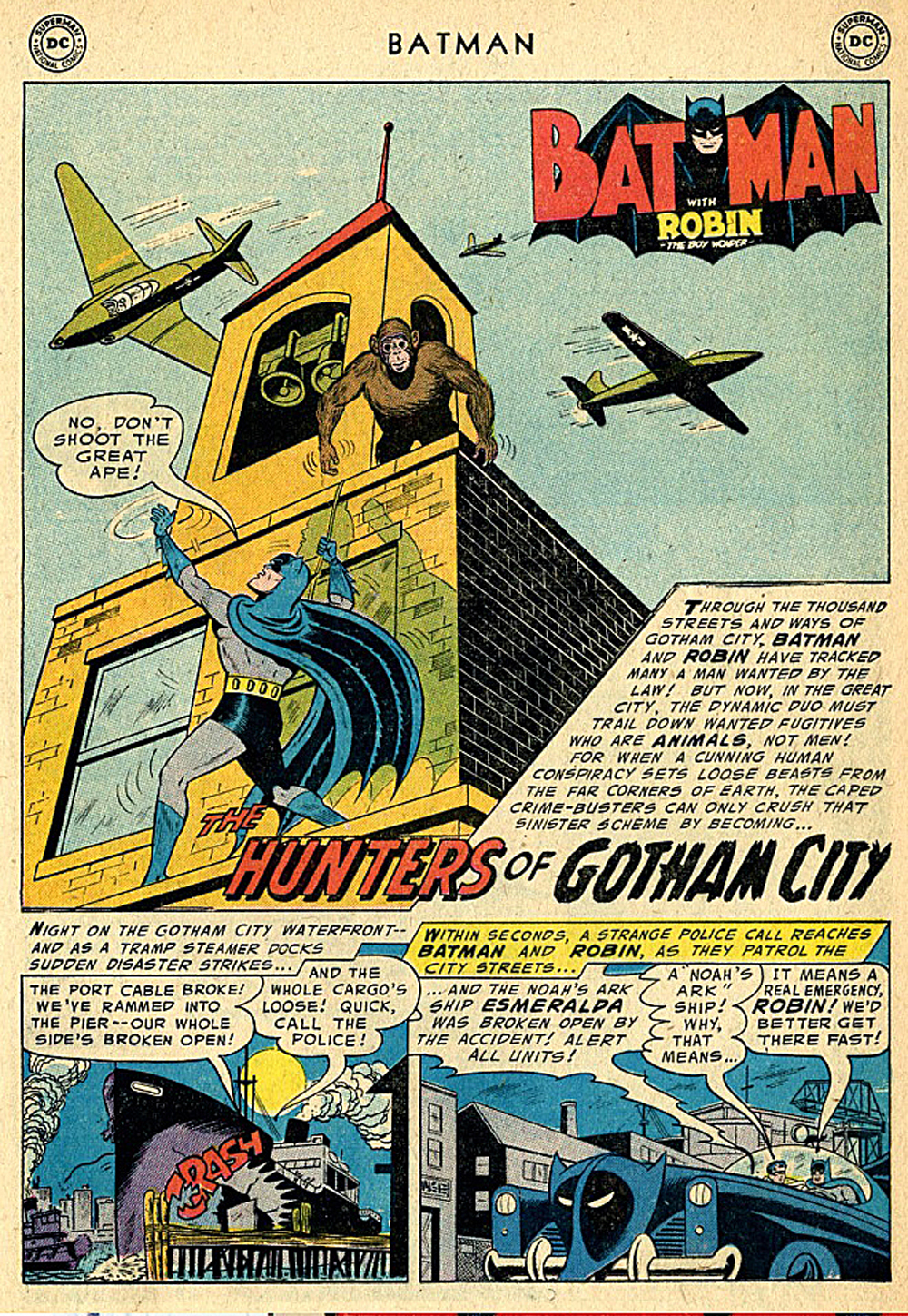 “The Hunters of Gotham City,” the second story of the issue (writer also unconfirmed), features Batman and Robin out to capture an escaped shipload of animals running loose in Gotham City, while also trying to uncover the criminal behind the move and their motive.