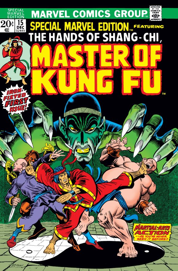 Here is Shang-Chi’s first appearance in 1973’s Special Marvel Edition #15. (The title evolved into Master of Kung Fu two issues later.):