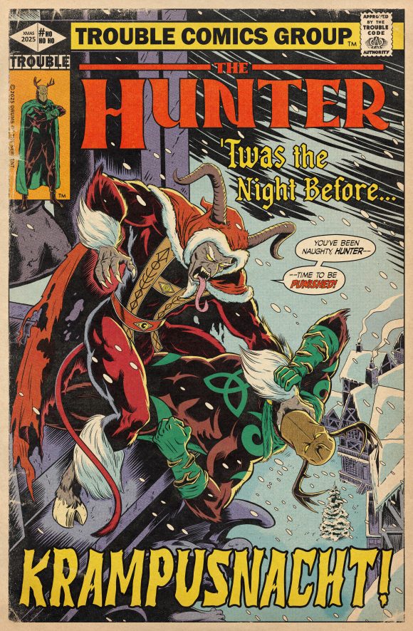 Pitch: “Steven Conrad (The Hunter’s alter-ego) finds himself snowed in at a small quaint town in the Midwest that is well known for their Krampuslauf festival. But there is something… unnatural about this snowstorm. Suddenly everyone in the town is frozen in place — like time itself has stopped! As Steven Conrad and Herne race to get to the bottom of this horrific holiday mystery, a dark figure emerges from the blizzard…”