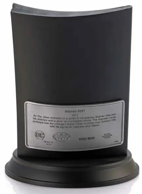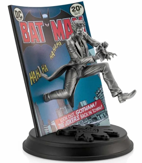 Illustrator Alan Quah and sculptor Mufizal Mokhtar’s impactful interpretation sees a menacing pewter Joker looming out of Neal Adams’ dramatic 1973 cover art, with Batman seemingly helpless.