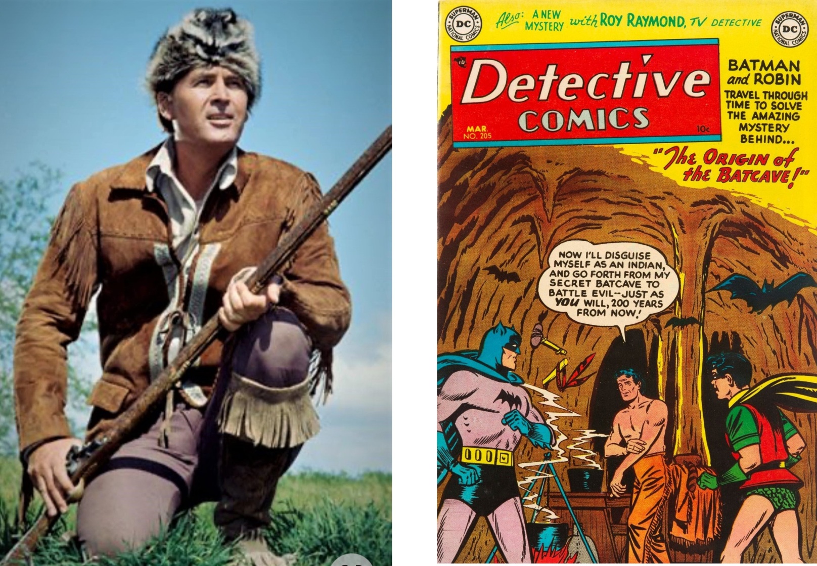 Fess Parker and the cover to Detective Comics #205 (Mar. 1954). Art by Win Mortimer.