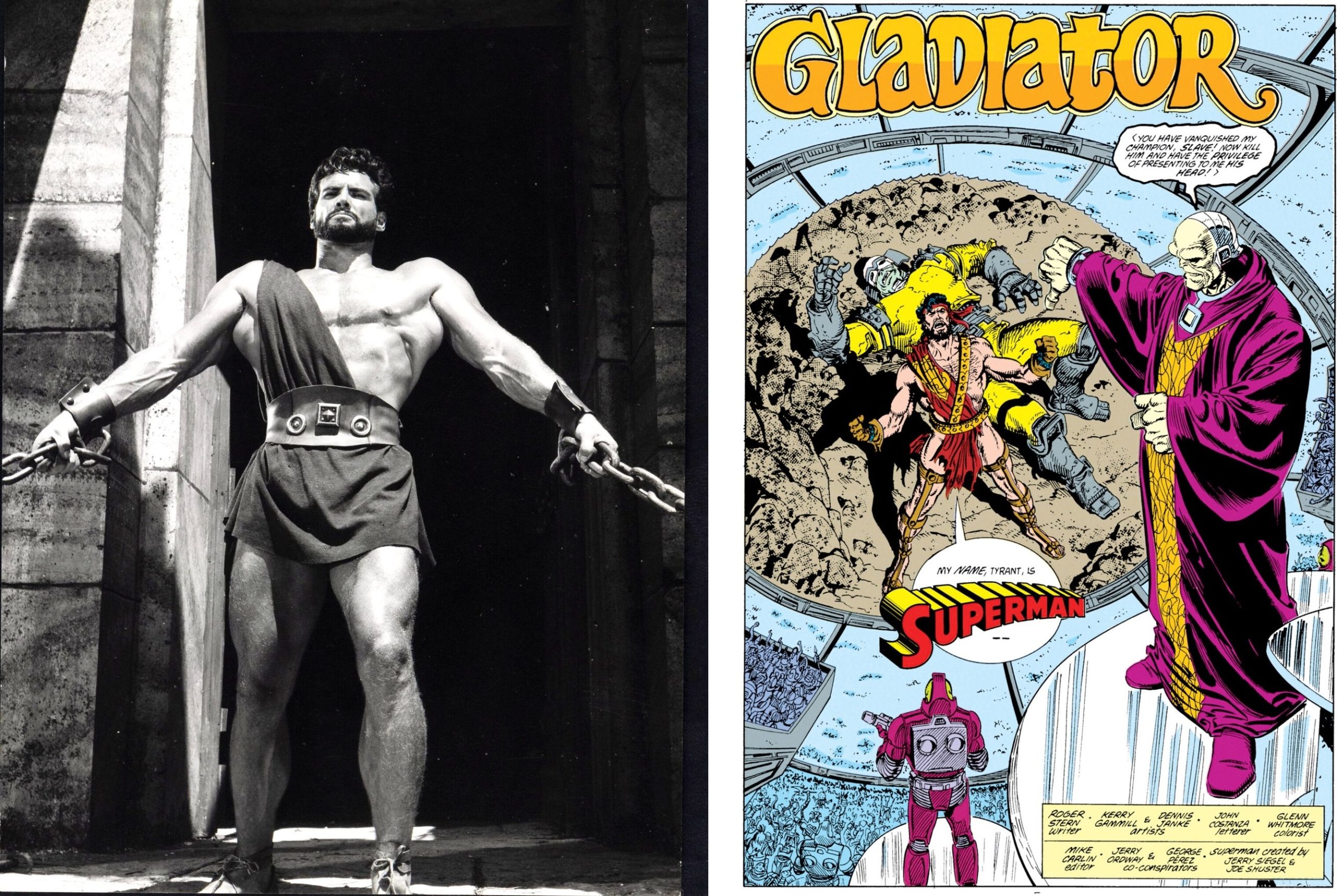 Steve Reeves in Hercules (1958), looking very similar to this splash page from Superman #32 (June 1989).