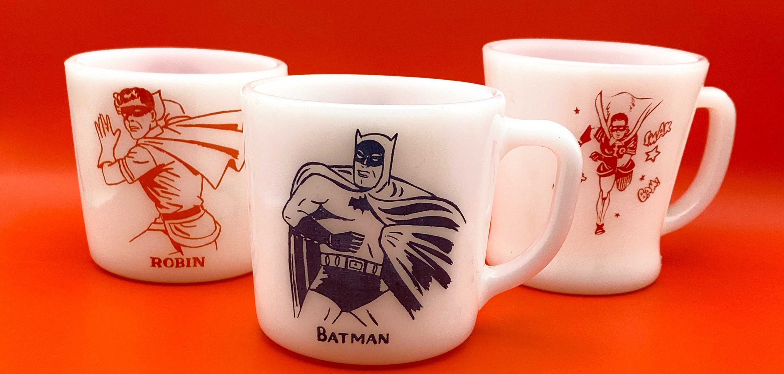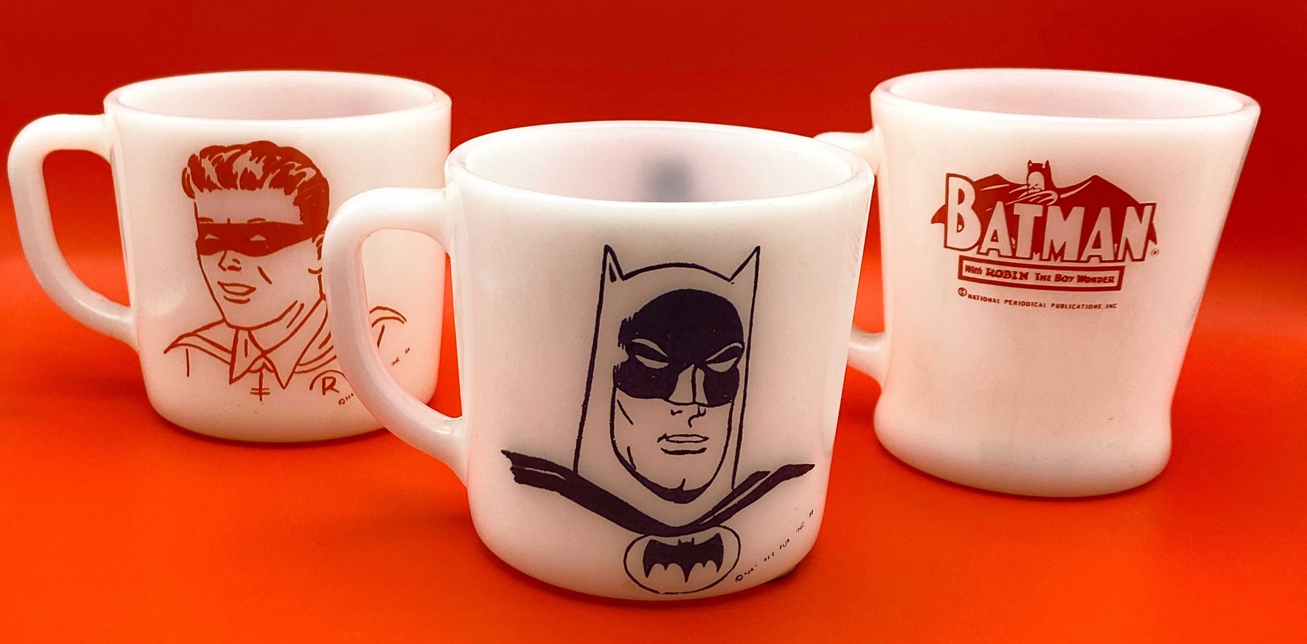 As you wolf down your juice and sugary cereal, across the table you notice your Dad has once again decided to use your Batman mug to drink his morning coffee. It was probably an absent-minded decision with no ill intention. But you know if he keeps doing that, the coffee is going to stain what your Mom called “milk glass”! And Batman’s mug has one side with the old logo with no circle around it! GAH!!!