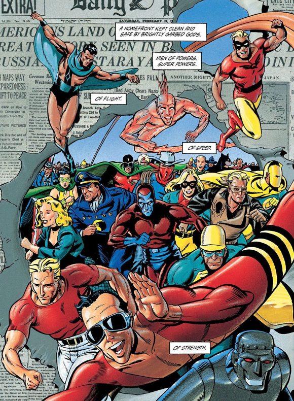 Peter Stone mentioned DC: The New Frontier, and in a lot of ways the two books are very comparable (although DC: TNF (my favorite comic of all time) is far, far better). The main difference is that DC: TNF is about beginnings, whereas The Golden Age is about endings.