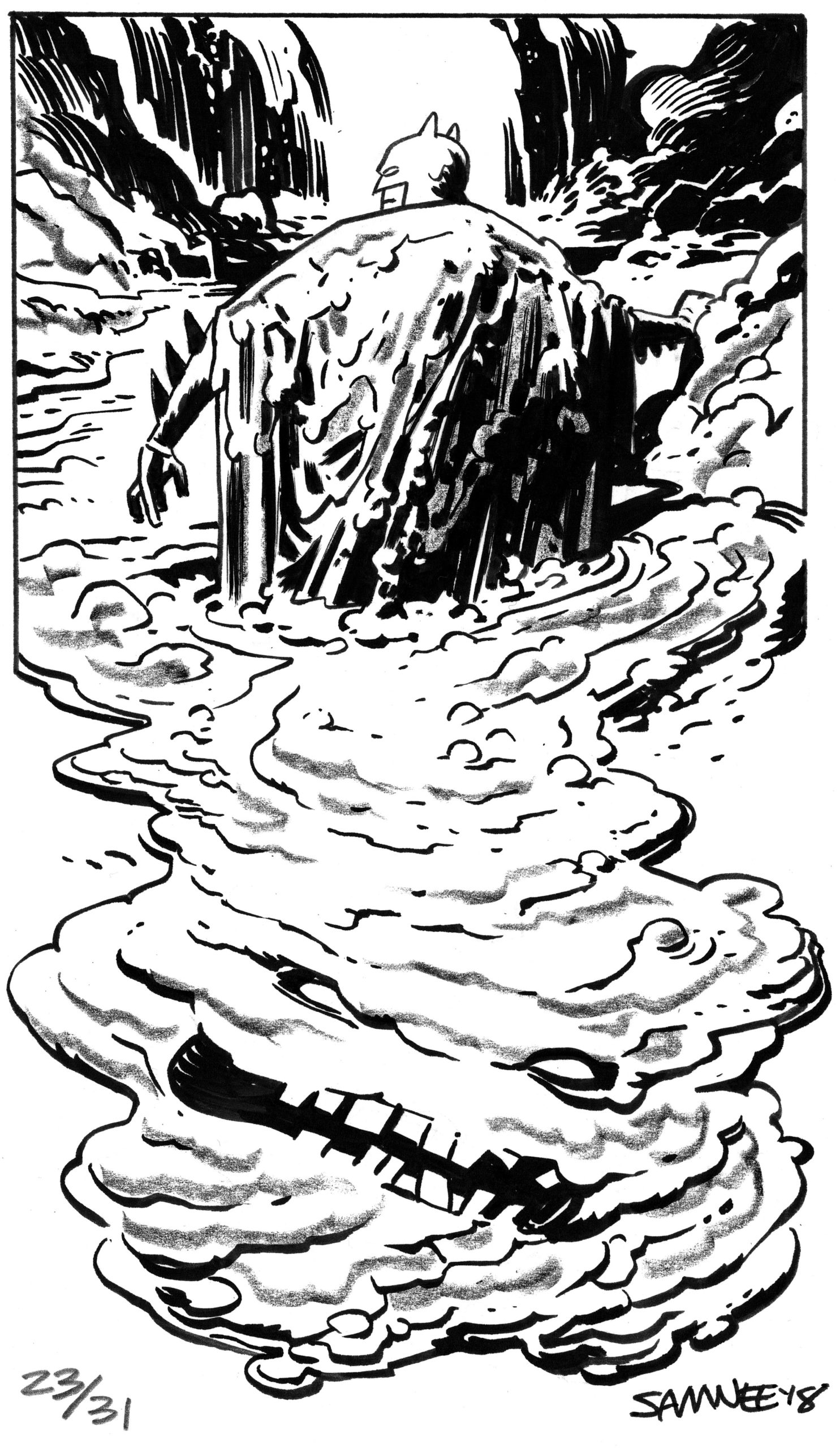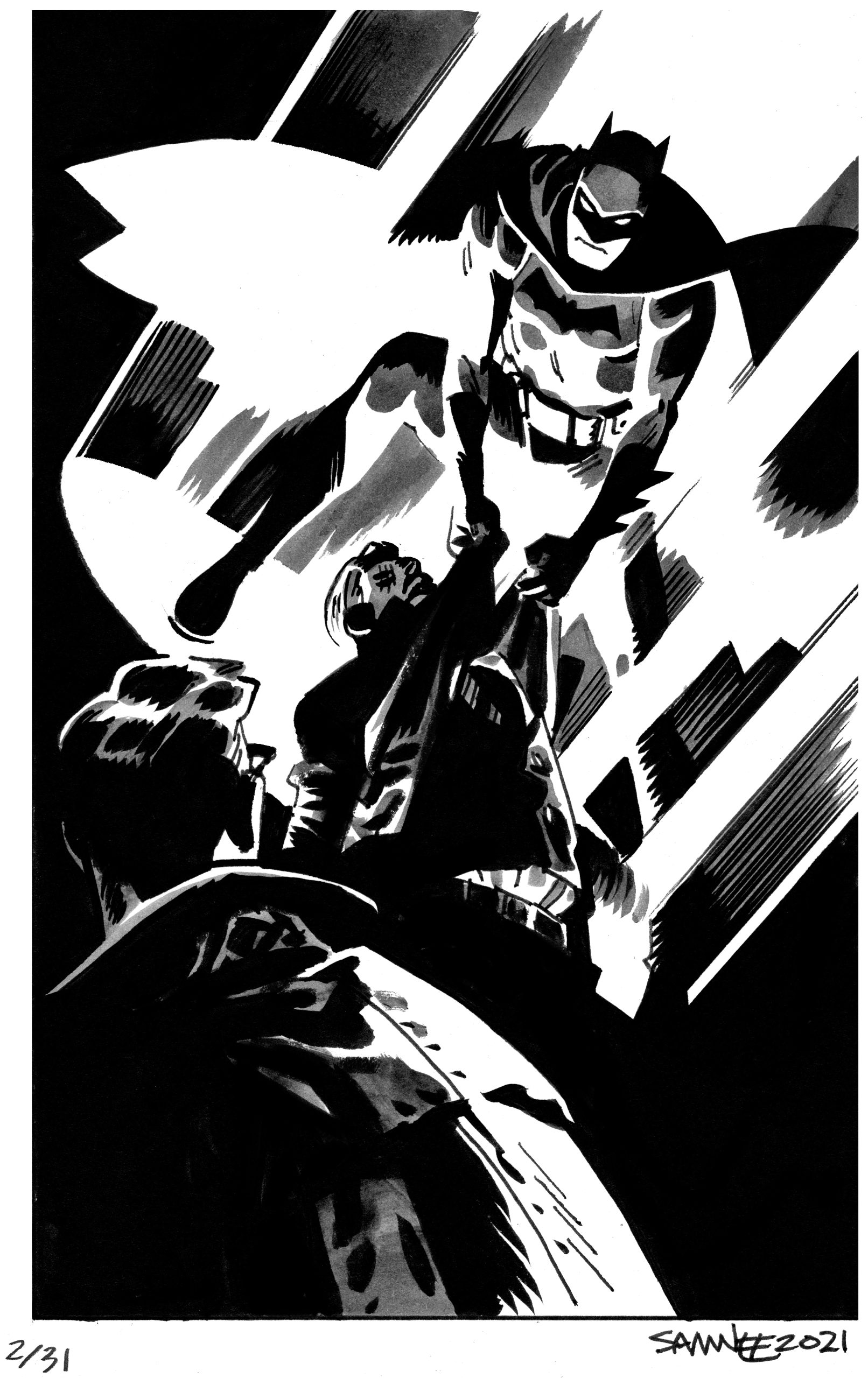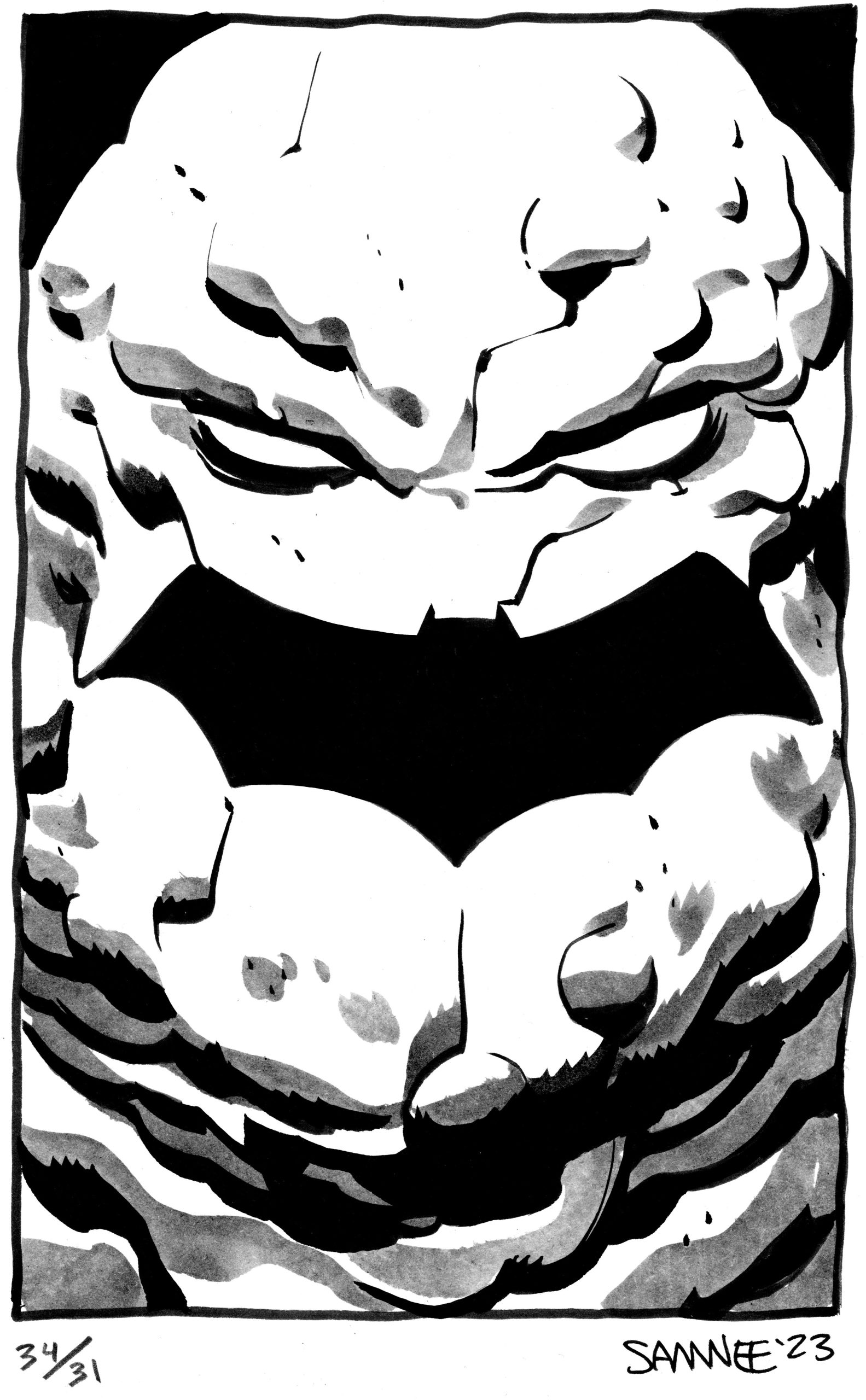 For eight straight years, from 2018 to 2024, superstar artist Chris Samnee posted online a new Batman black-and-white sketch every day for the month of October. Each image was based on a one- or two-word prompt. He called it #Batober, like similar “-tober” exercises by other artists.