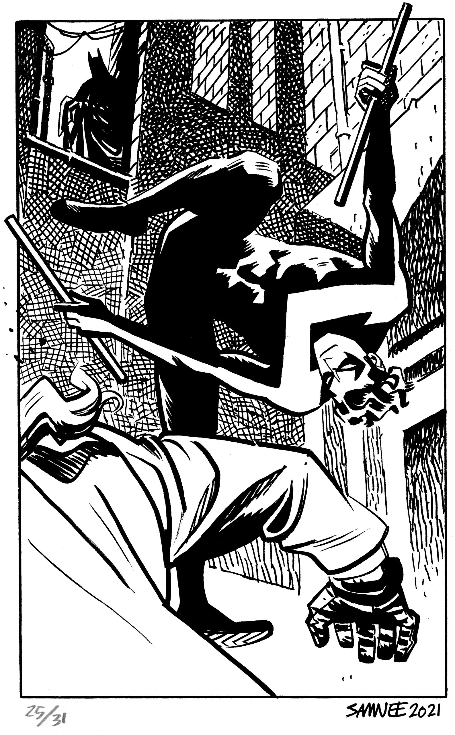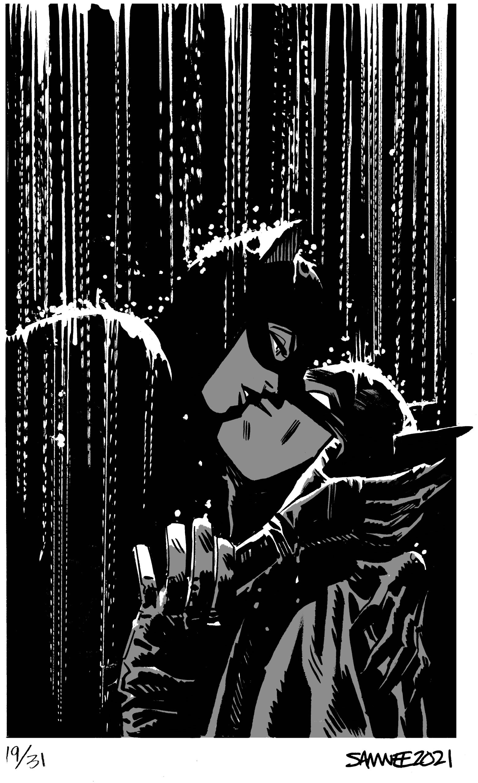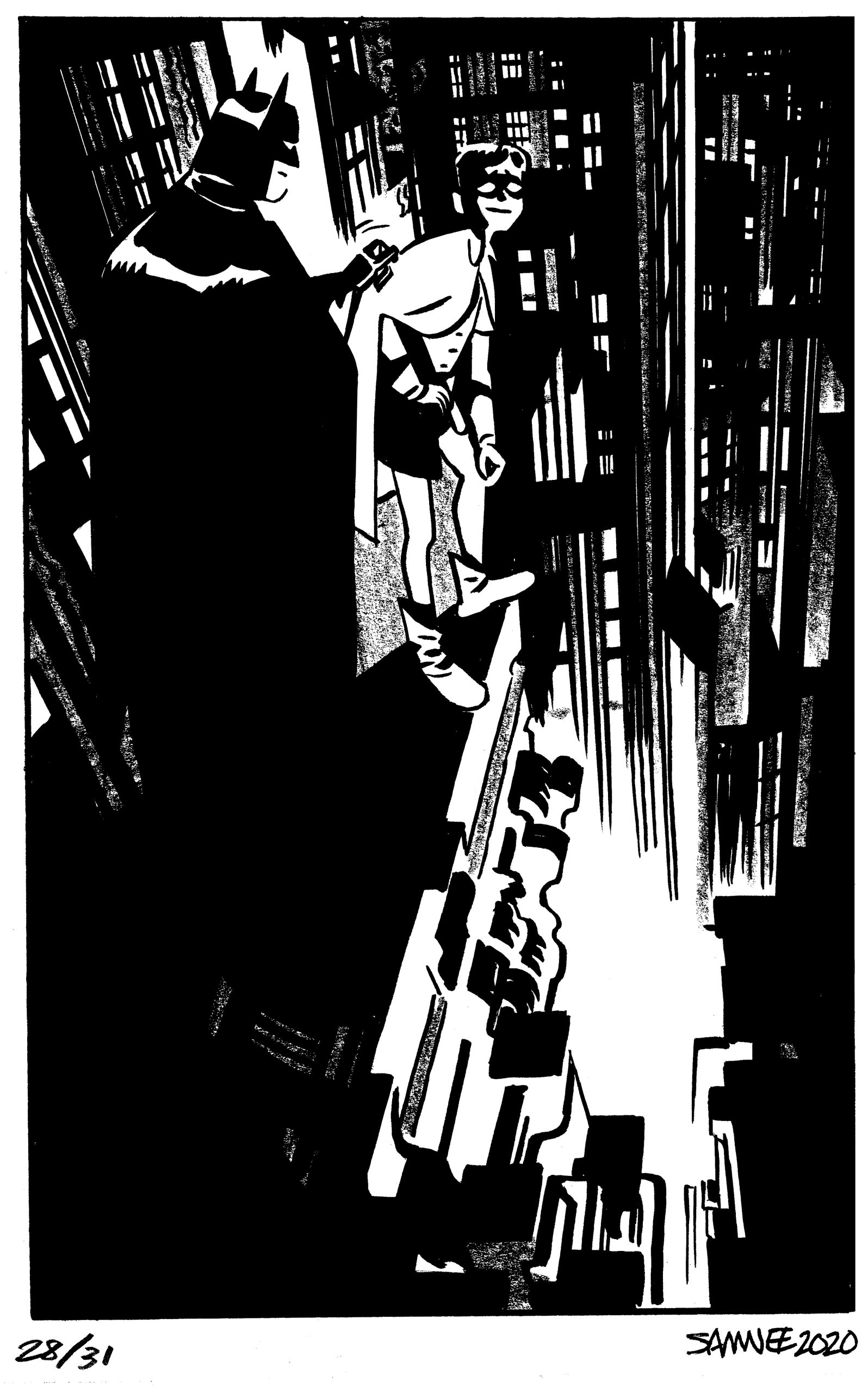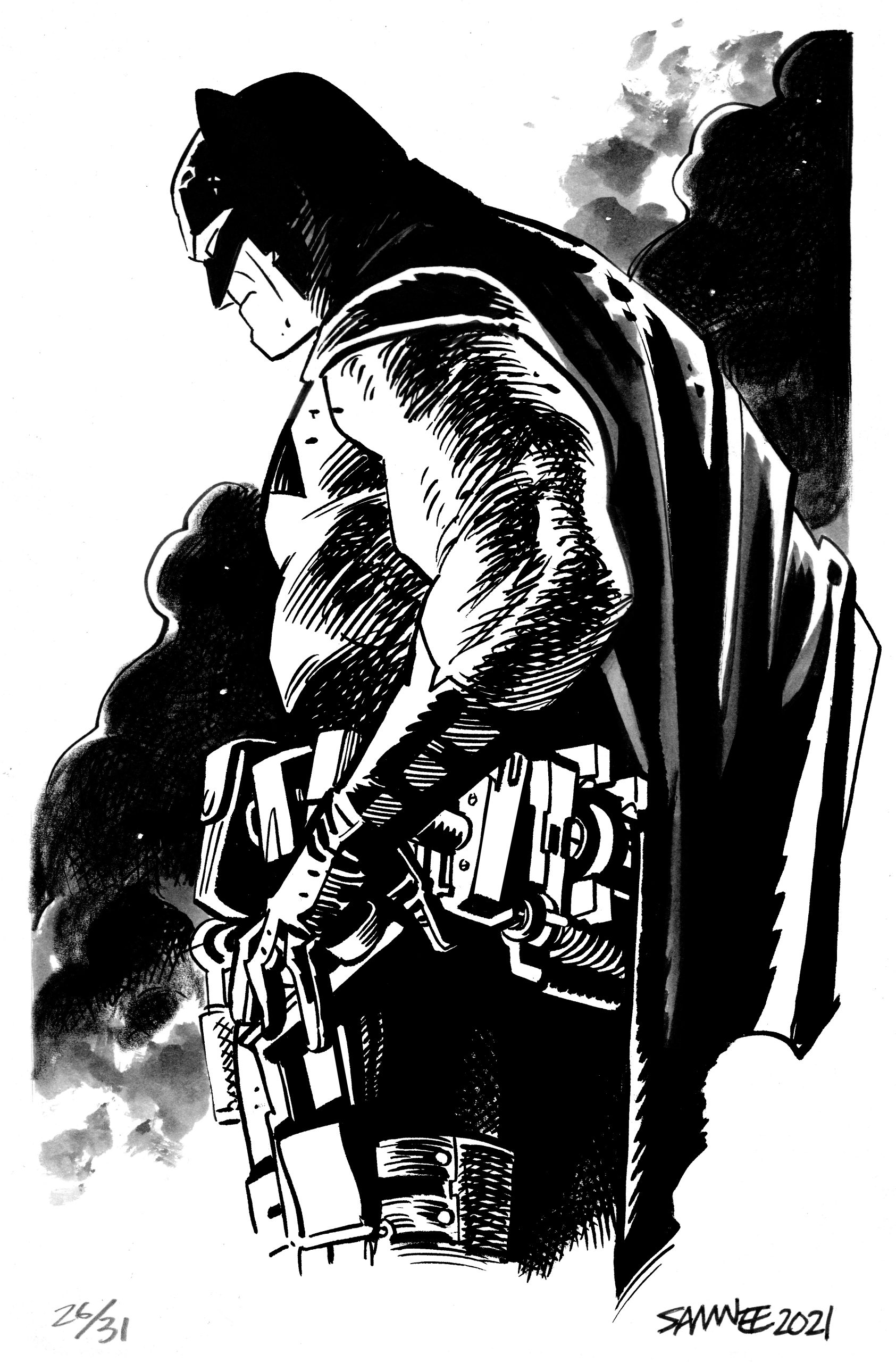For eight straight years, from 2018 to 2024, superstar artist Chris Samnee posted online a new Batman black-and-white sketch every day for the month of October. Each image was based on a one- or two-word prompt. He called it #Batober, like similar “-tober” exercises by other artists.
