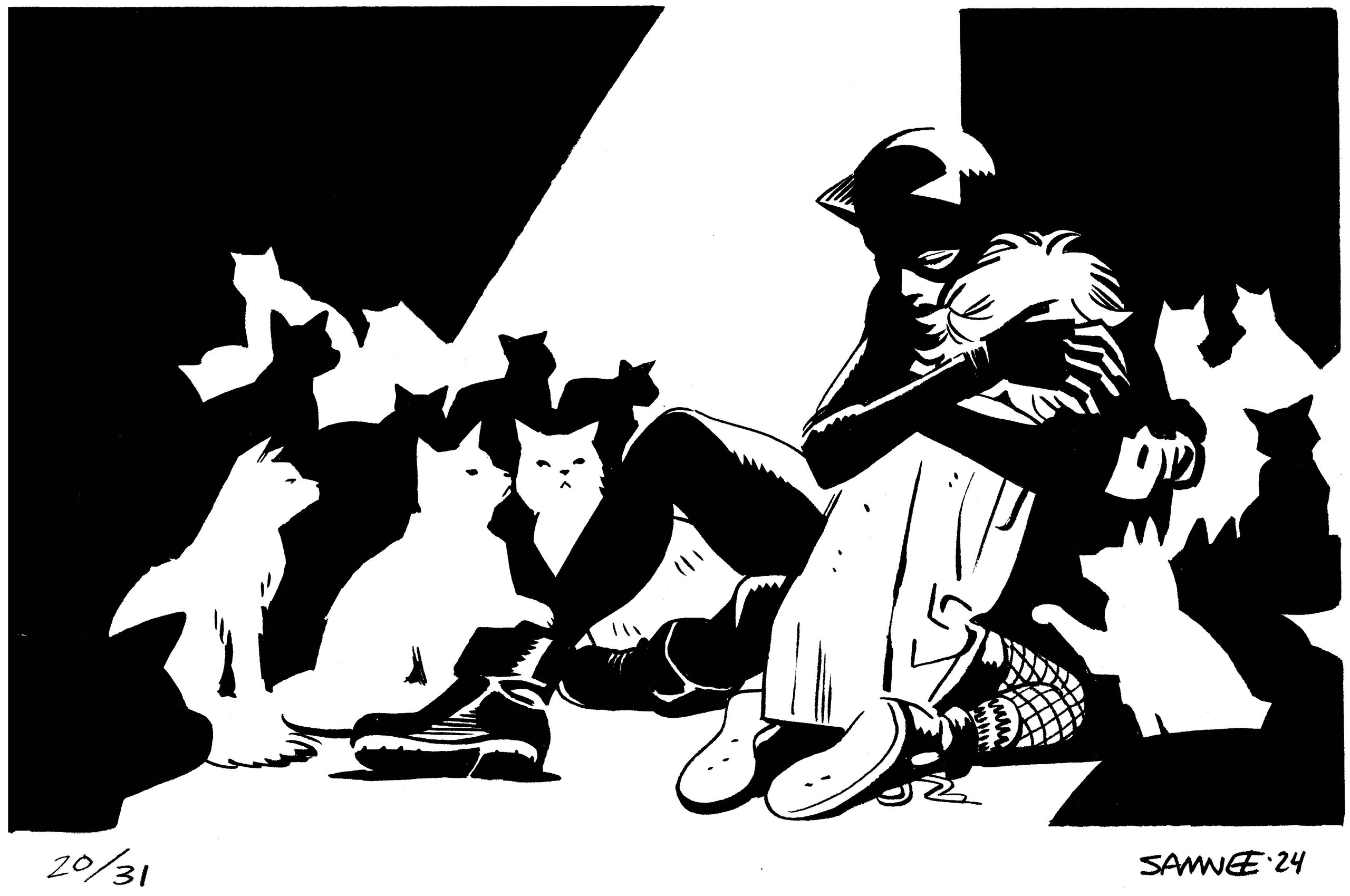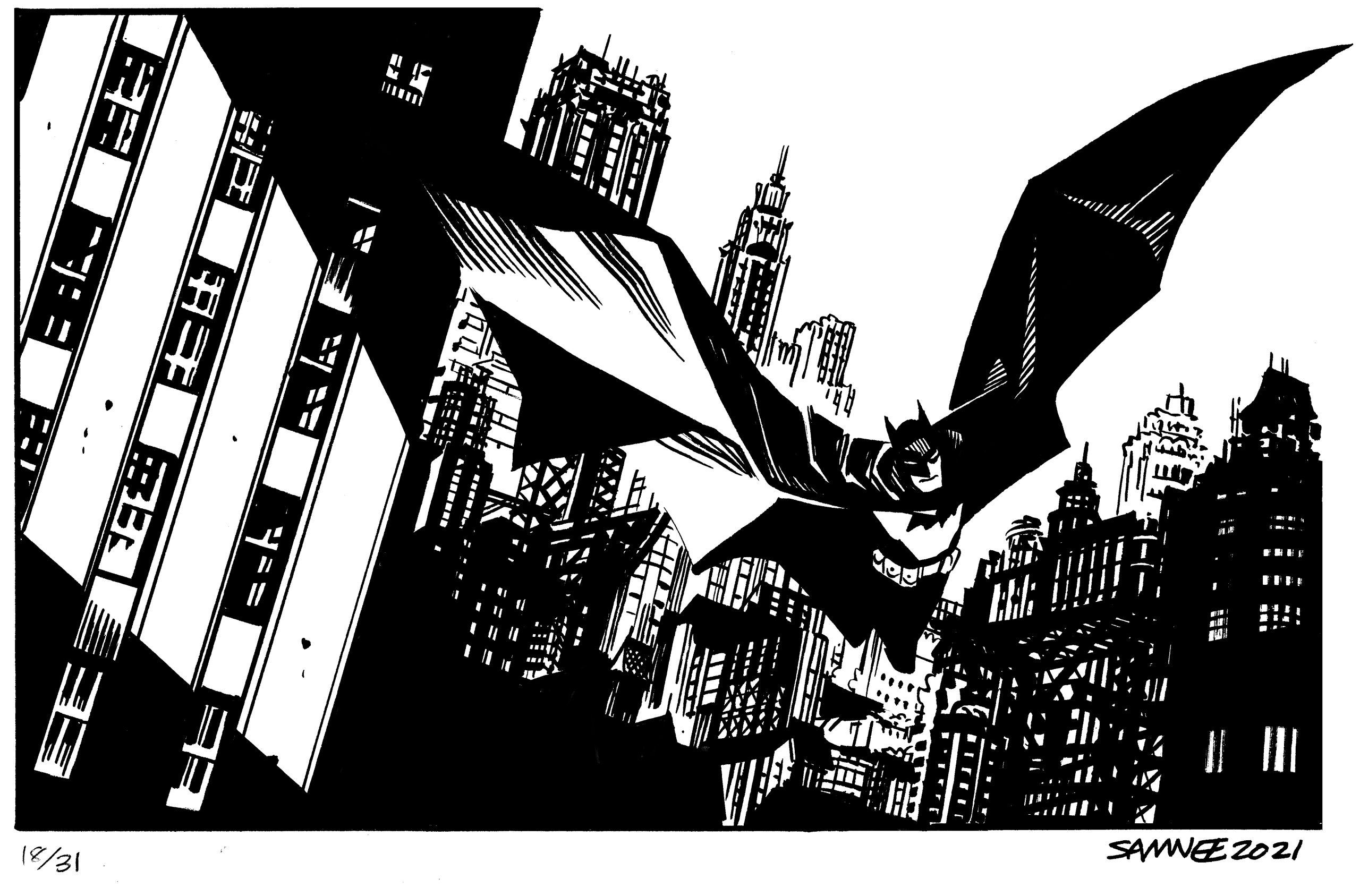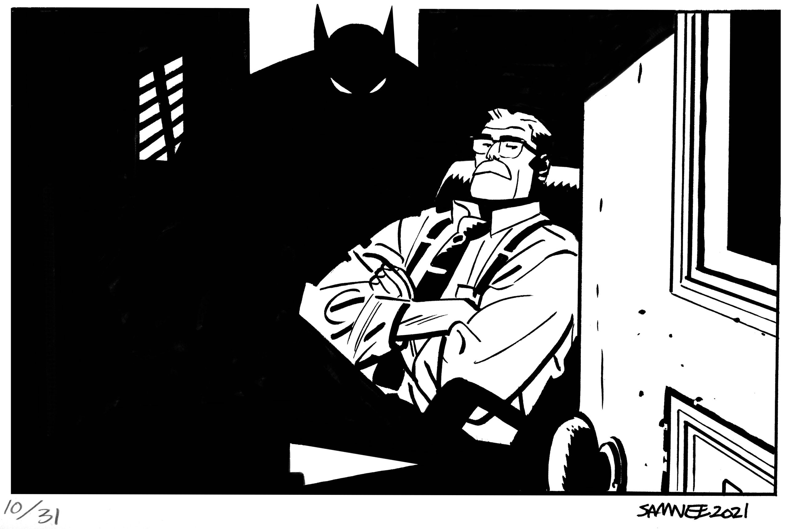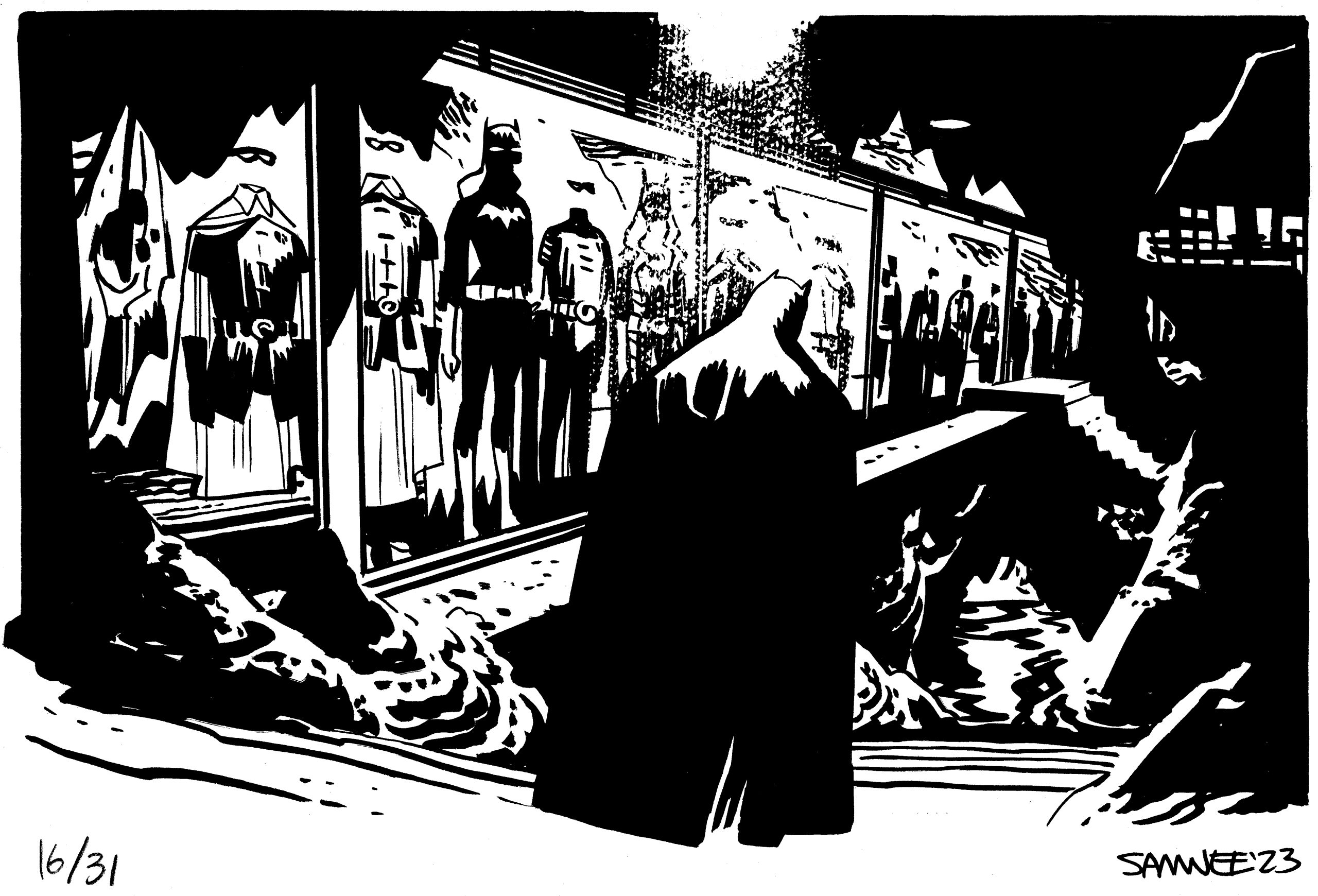 For eight straight years, from 2018 to 2024, superstar artist Chris Samnee posted online a new Batman black-and-white sketch every day for the month of October. Each image was based on a one- or two-word prompt. He called it #Batober, like similar “-tober” exercises by other artists.