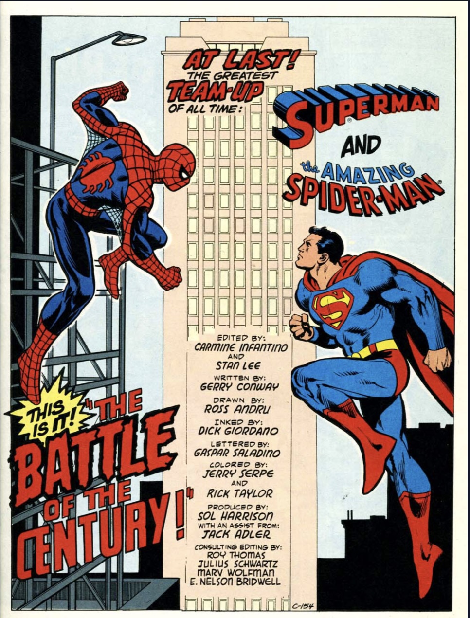 Billed as “The Battle of the Century!” the 1976 comic reunites one of the greatest Amazing Spider-Man creative teams of all time in writer Gerry Conway and artist Ross Andru, so we see how seriously the Big Two took this inaugural collaboration.