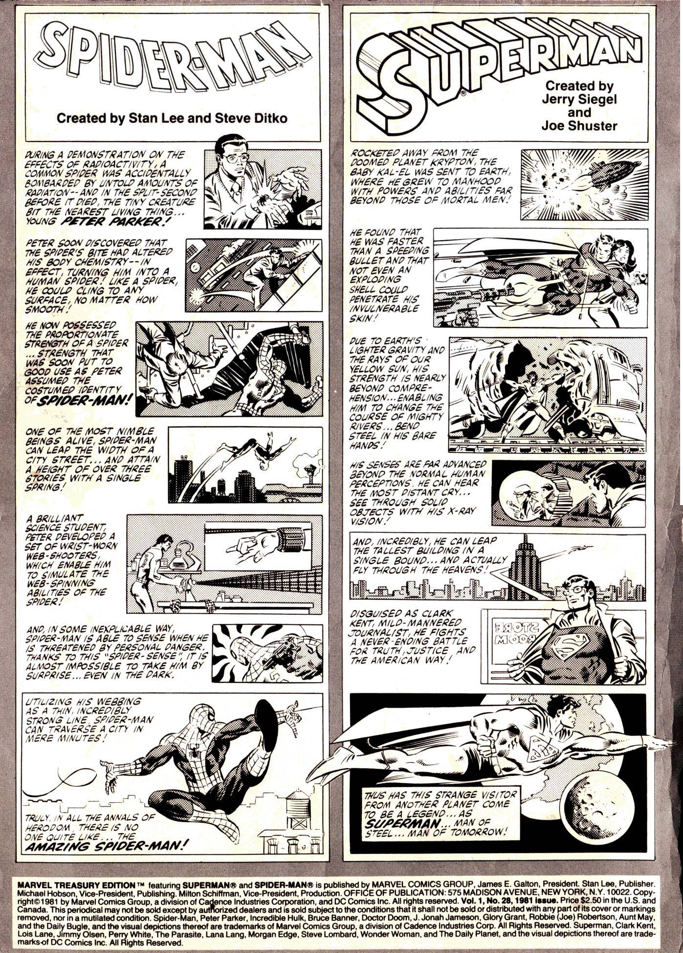 The first thing I notice when I open up the 1981 comic is they dispense with the Elevator Pitch details of each hero on the inside front cover. Most amusingly, I see that Spider-Man has been “created by Stan Lee and Steve Ditko,” an unusually direct expression of authorship from the company that would slap “Stan Lee Presents:” on every title (including Star Wars) until the 21st century.