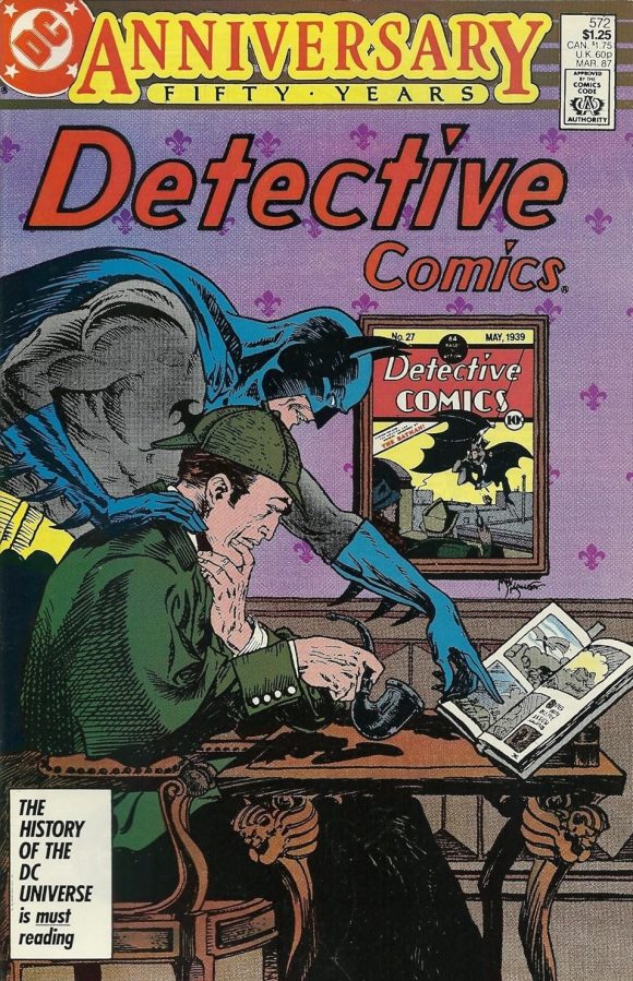 9. Detective Comics #572, Another Anniversary Issue. Detective Comics #572 was released late in 1986 and was the third anniversary issue featuring Batman that year. It was part of the classic Barr/Davis/Neary run and even had a special two-page Batman spread by Golden Age great Dick Sprang.