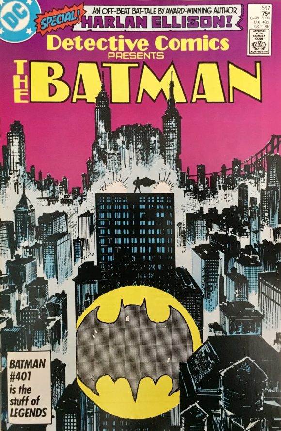 6. Detective Comics #567. This issue was important for a few reasons. It marked the last issue of the Batman monthlies under the editorial rein of Len Wein; it was the last issue for Gene Colan, who had been contributing art to the Batman monthlies since 1981; it was the end of Detective Comics having a backup feature or co-star, with the finale of the Green Arrow stories; it had a standout cover by Dark Knight Returns inker Klaus Janson, complete with a redesigned Detective Comics logo for that issue only; and it was an offbeat tale by guest writer Harlan Ellison.