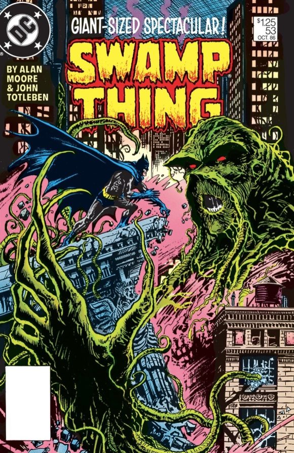 Batman left the Outsiders in Batman and the Outsiders #32 and rejoined the Justice League of America in Issue #250, even leading them for a few issues. He also co-starred with Superman and Lex Luthor in the all-star creator benefit book Heroes Against Hunger; appeared in Alan Moore’s classic Swamp Thing run for four issues; appeared in that year’s Super Powers mini-series; had a walk-on appearance in Action Comics #583 (Alan Moore’s “Whatever Happened to the Man of Tomorrow?”); showed up in The Man of Steel #3; and even did a guest shot in Outsiders Annual #1.