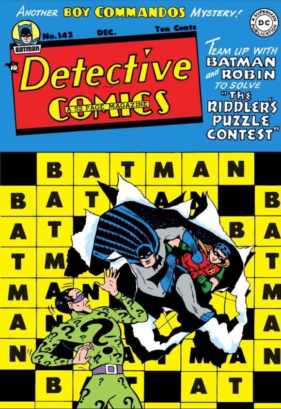 1. The Riddler. No doubt Sprang’s most significant villainous contribution to the mythos was the co-creation and introduction of Edward Nigma himself, the Riddler. Batman co-creator Bill Finger provided the story and Paris the inks for the Prince of Puzzlers’ debut in Detective Comics #140 (Oct. 1948), and the question-mark-festooned felon was the last great Golden Age foe added to Batman’s Rogues Gallery.