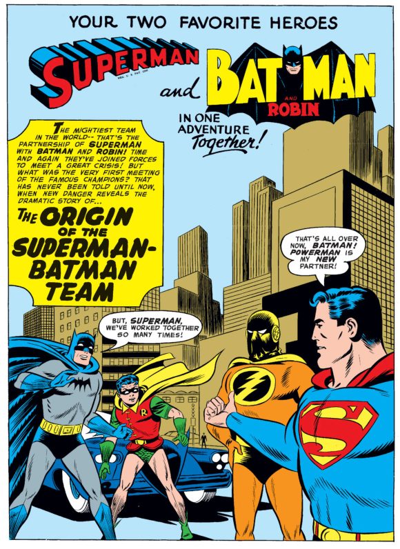 6. “The Origin of the Superman-Batman Team.” Sprang took over illustrating the Superman/Batman team-ups from initial artist Curt Swan in World’s Finest Comics with Issue #78 (Sept./Oct. 1955). But he really made his mark with Issue #94 (May/June 1958), and the oft-reprinted story “The Origin of the Superman-Batman Team.”