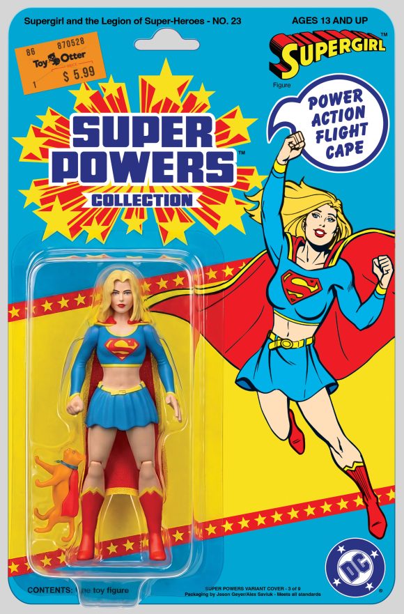 Accompanying them are the two latest Super Powers variant covers by Jason “ToyOtter” Geyer and Alex Saviuk — one for 2006’s Supergirl and the Legion of Super-Heroes #23 and one for 1990’s Lobo #1.