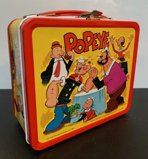I saved this one for last because of its curious nature. Maybe it’s just me, but I find it sort of amazing that nobody at Aladdin Industries in 1980 thought that a kids’ lunchbox showing Olive Oyl, battered and mangled at the hands of Popeye and Bluto was problematic.
