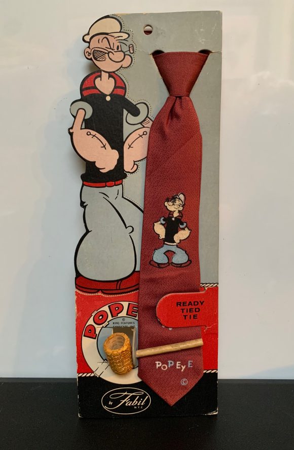 Like most kids, I hated wearing ties, but having one with a cartoon character on it could make it bearable, if not downright cool. I love that this tie came with a pipe! This gives me an idea for a future TOYHEM! article — toys from the past that encouraged smoking! (NOTE From Dan: I’ll take it!) This is probably from the 1950s.