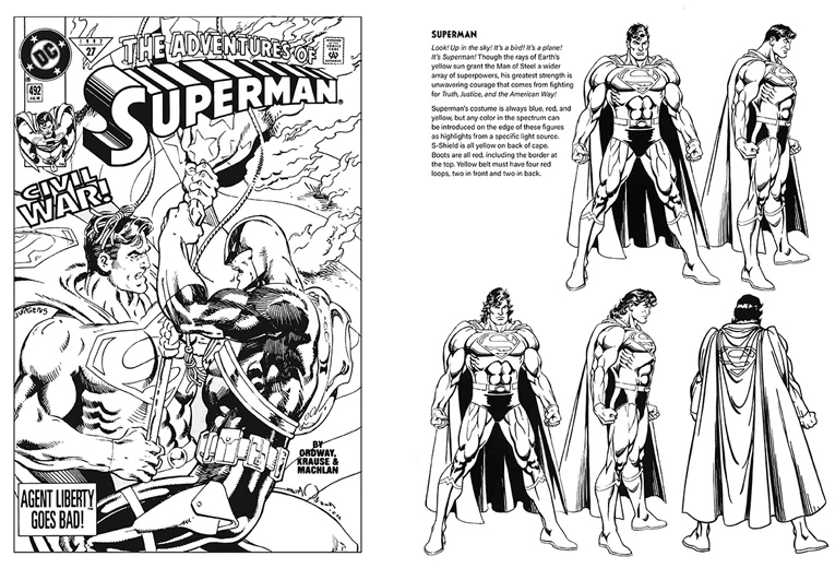 STRAIGHT FROM THE ARCHIVES: Featuring artwork from the official DC Comics style guides, these pages contain vintage reference materials artists were using in the 90s to shape their stories and the products devoted to the Man of Steel.