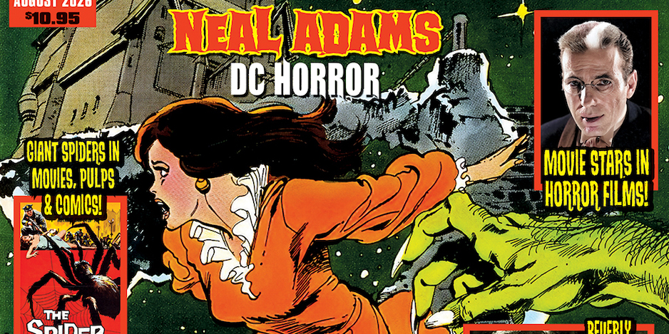 “Don’t turn your back for even a second, for I, the Cryptologist, have returned from the mire to bring you the latest issue of my despicable magazine! For fans of Neal Adams’ horror comics, I’ve got a wealth of his dark imaginings to share with you, plus never-before-seen things to pique your interest. Once you’ve savoured that, you’ll be fascinated to see Batman’s perilous encounters with the macabre, before I disclose some surprising actors who couldn’t resist the lure of the horror movie—one of them being Humphrey Bogart! Spiderbaby’s very own Beverly Washburn will venture into my lair to discuss her time in horror, as a prelude to my setting loose the spiders that terrorized cinema screens, comic books and the pulps. And before you go, I’ll throw in more of those lurid paperback covers along, with your regular dose of B-movie masterpieces and another selection from the Hammer archive. So if you enjoy the dark side, I dare you to step on into my creepy magazine with editor Peter Normanton, solely cooked up for you retro horror fans!”