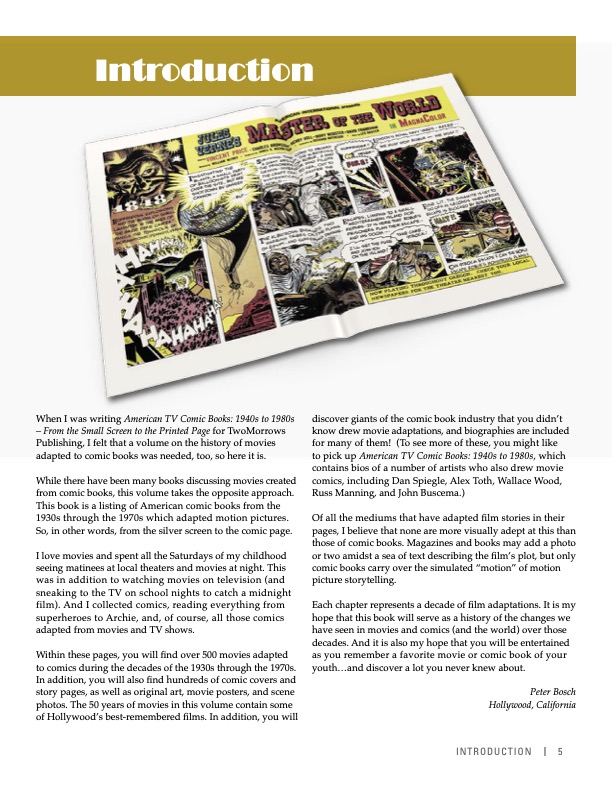Now, as it happens, Peter’s got a new book out this week — the sequel volume American Movie Comic Books (1930s-1970s). (Both are published by TwoMorrows.) We’ve got some groovy features on it in the days ahead but we wanted to start the week with an EXCLUSIVE PREVIEW of the book, which is a thorough, colorful exploration of a comics genre that doesn’t get enough attention.