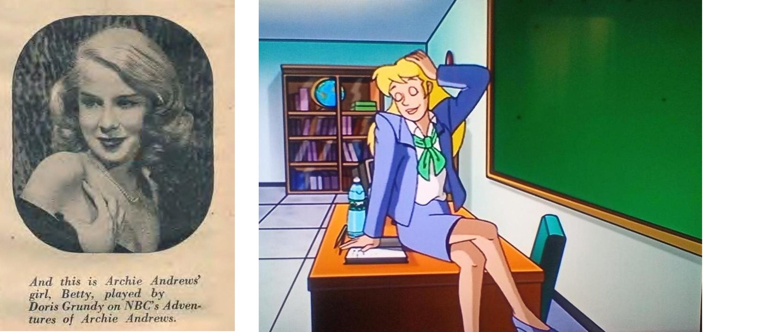 Oh, and there were three Bettys — played by Joy Geffen, Rosemary Rice, and Doris Grundy, who happened to have the same last name as Archie’s teacher, Miss Grundy. (In “Twisted Youth,” a 1999 episode of the cartoon Archie’s Weird Mysteries, Miss Grundy’s first name is revealed to be “Doris.” In the same episode, Miss G drinks a youth serum and is shown to be a beautiful blonde, just like you-know-who.”