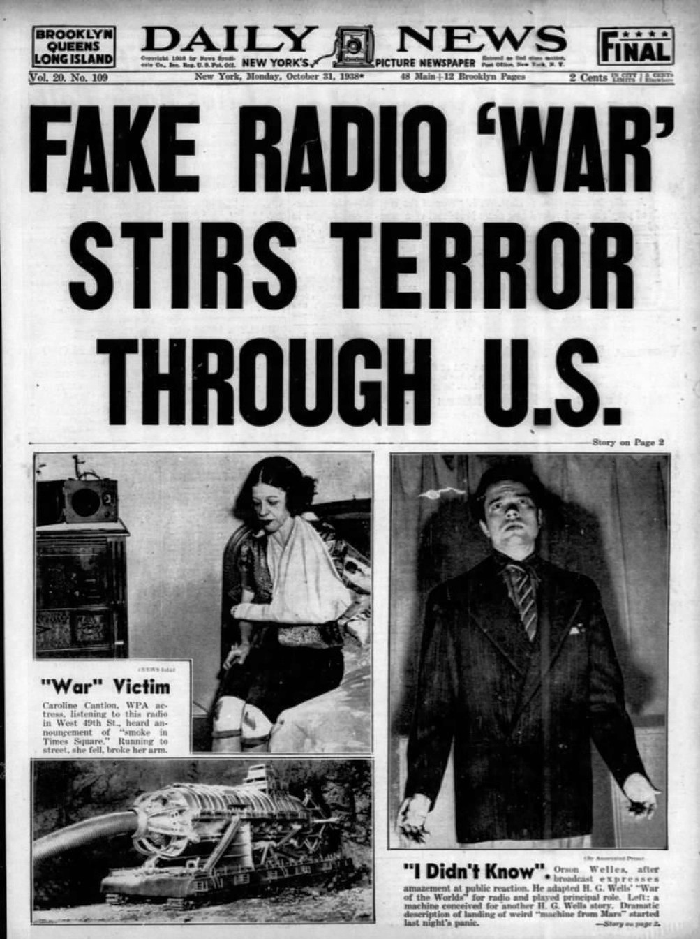 It was reported the next day across the front pages of American newspapers, in screaming headlines, that people thought it was real and had been terrified.