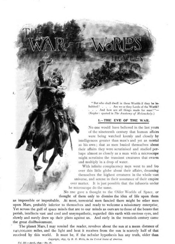War of the Worlds began as a serialized novel in this April 1897 issue of Pearson’s Magazine in the UK.