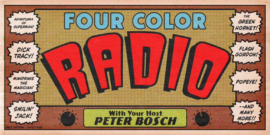 Welcome to the inaugural “episode” of FOUR COLOR RADIO, our new, ongoing feature by PETER BOSCH that looks at old-school radio shows and their comics connections. For more info on this fancy new series, click here! (And dig that Walt Grogan banner!) — Dan